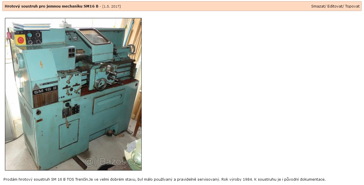 Mám SM16 A za mě na meší veci supr soustruch jestli je dobrá cenovka tak bych se nerozmešlel.