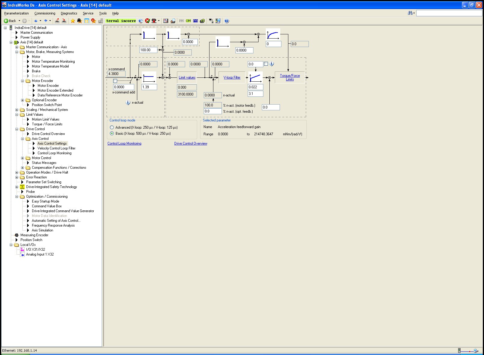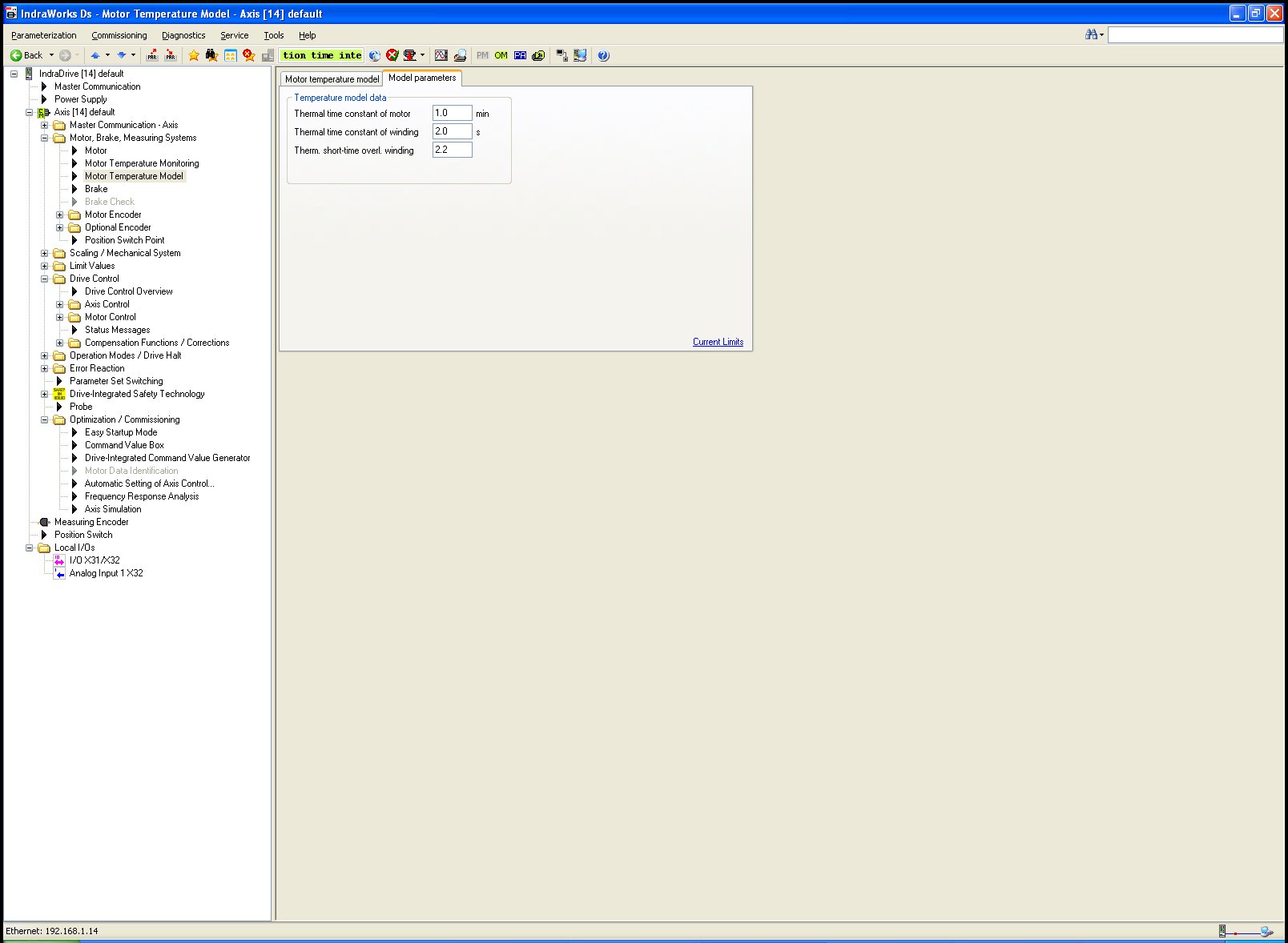 nastavuju indradrive Cs s motorem Panasonic MSM042F2GE