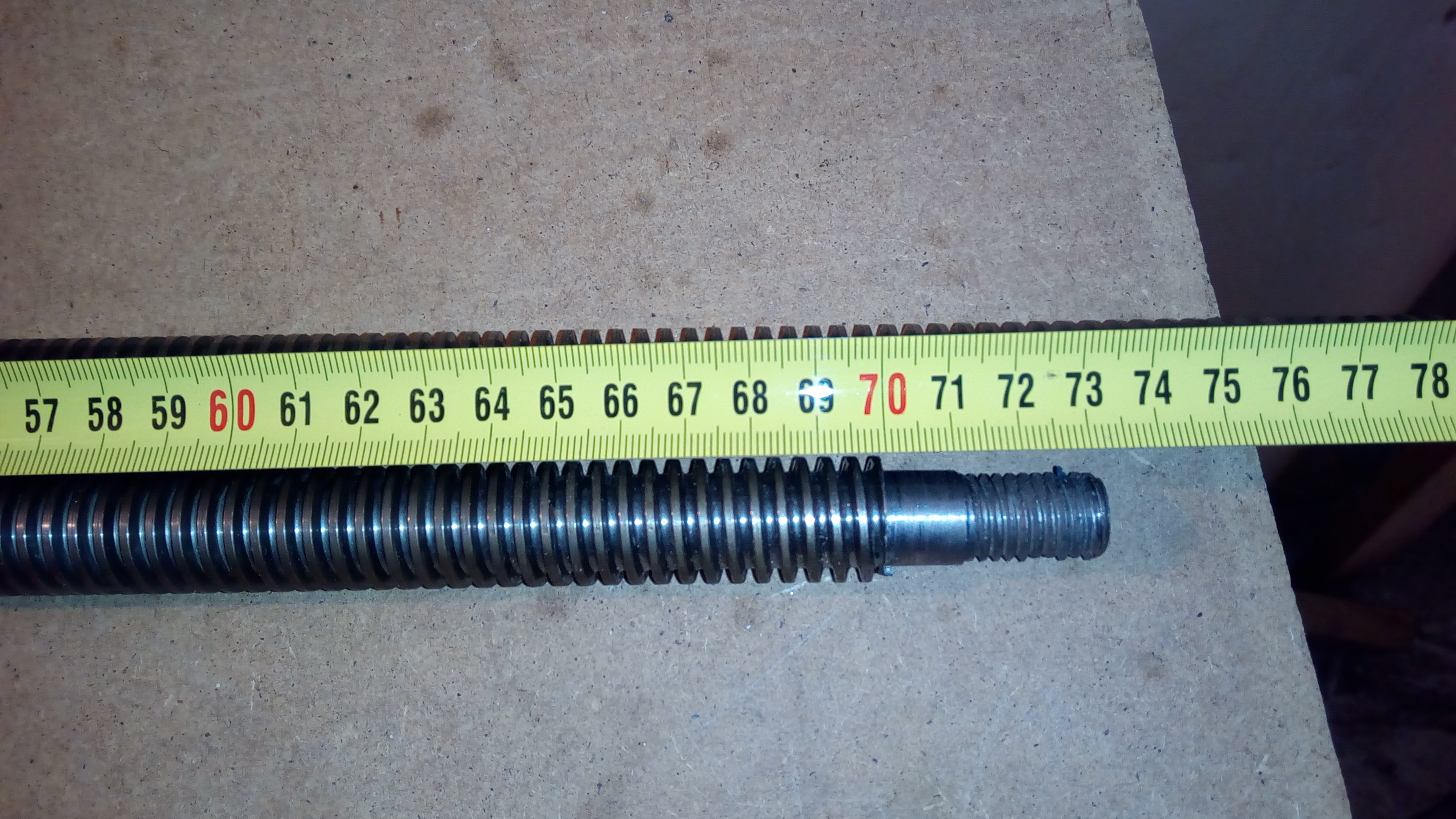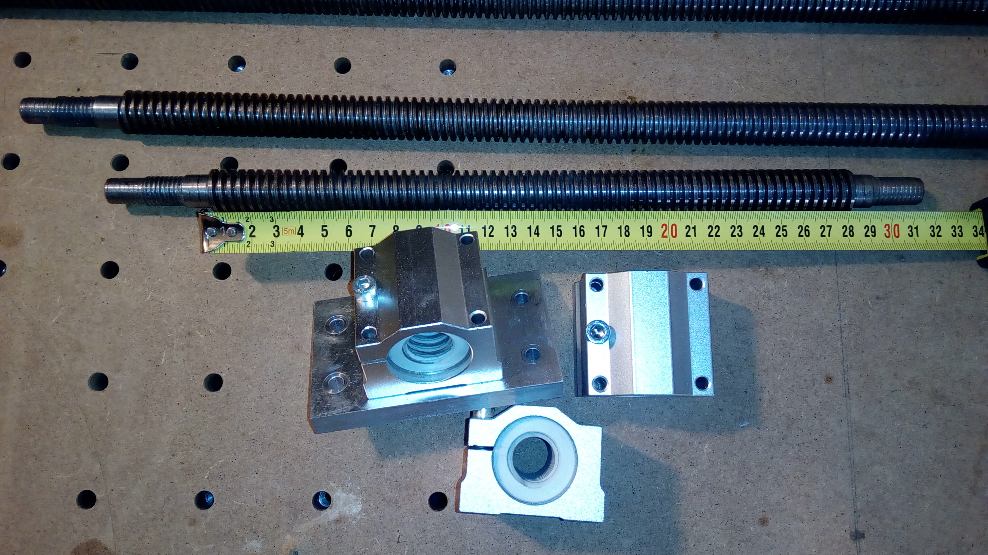 Dále k tomu jsou 3x trapézové šrouby TR2004, stoupání 4 mm a průměr 20mm. Délky jsou 280 mm, 700 mm a 1080 mm.