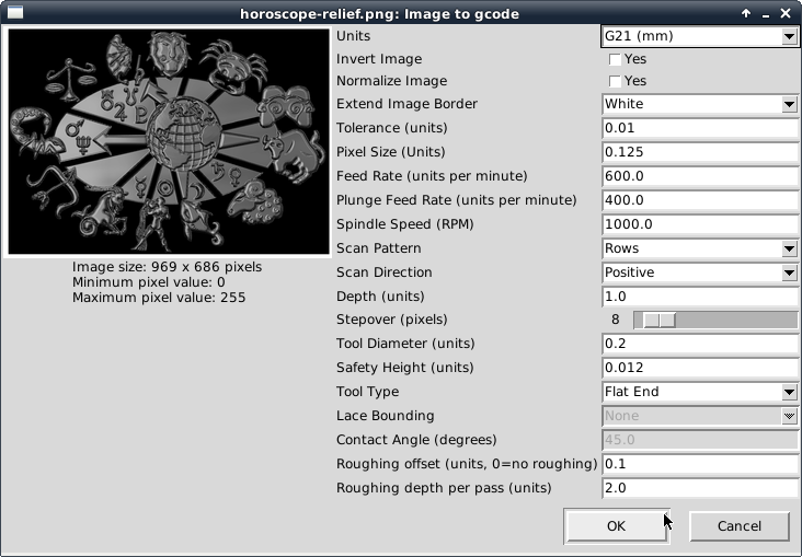 - podle mě je nesmyslně nastavený Tool Diameter, tj. průměr nástroje (frézy) na 0.2mm, takovou frézu asi nemáš, takže tam dej průměr v mm své konkrétní frézy