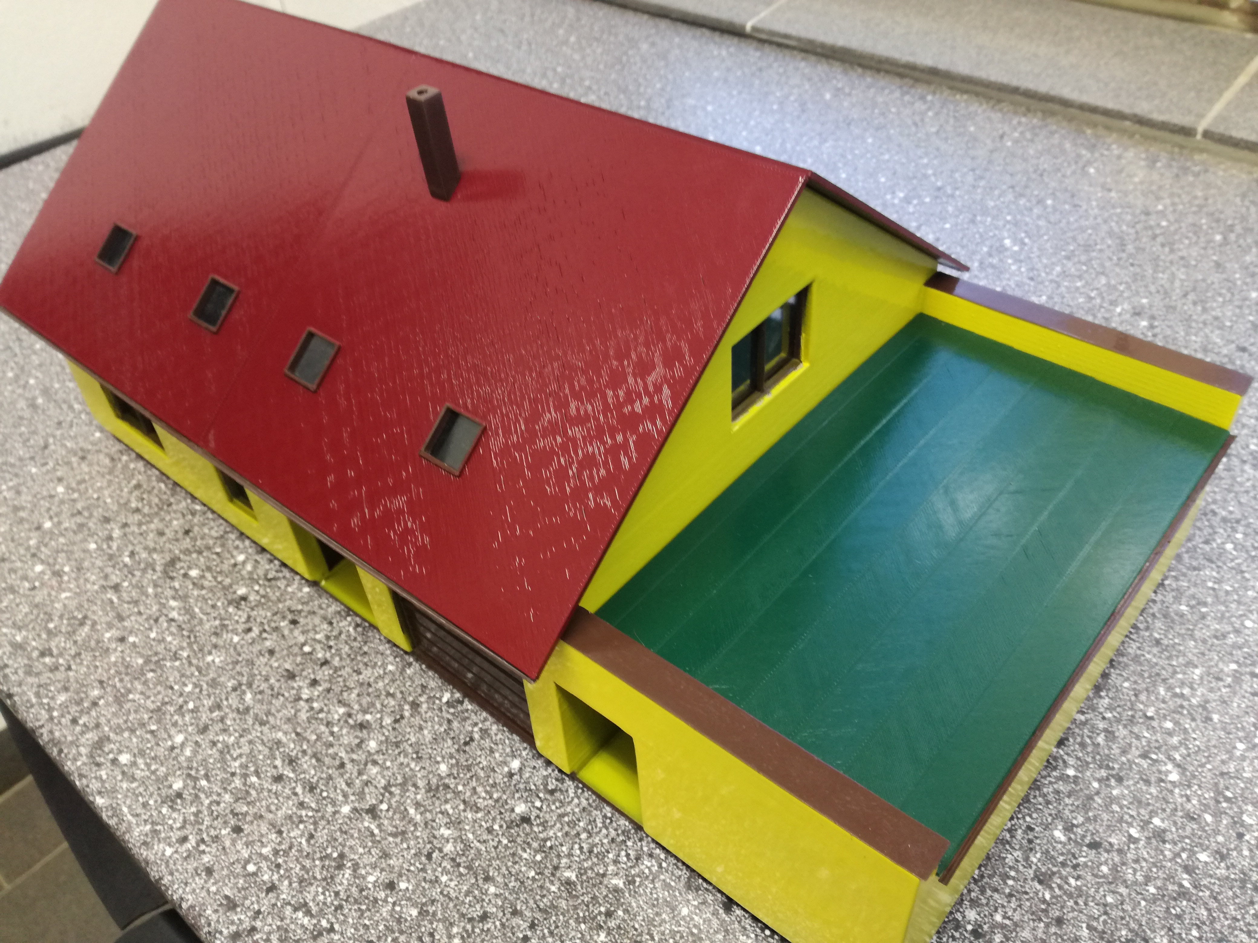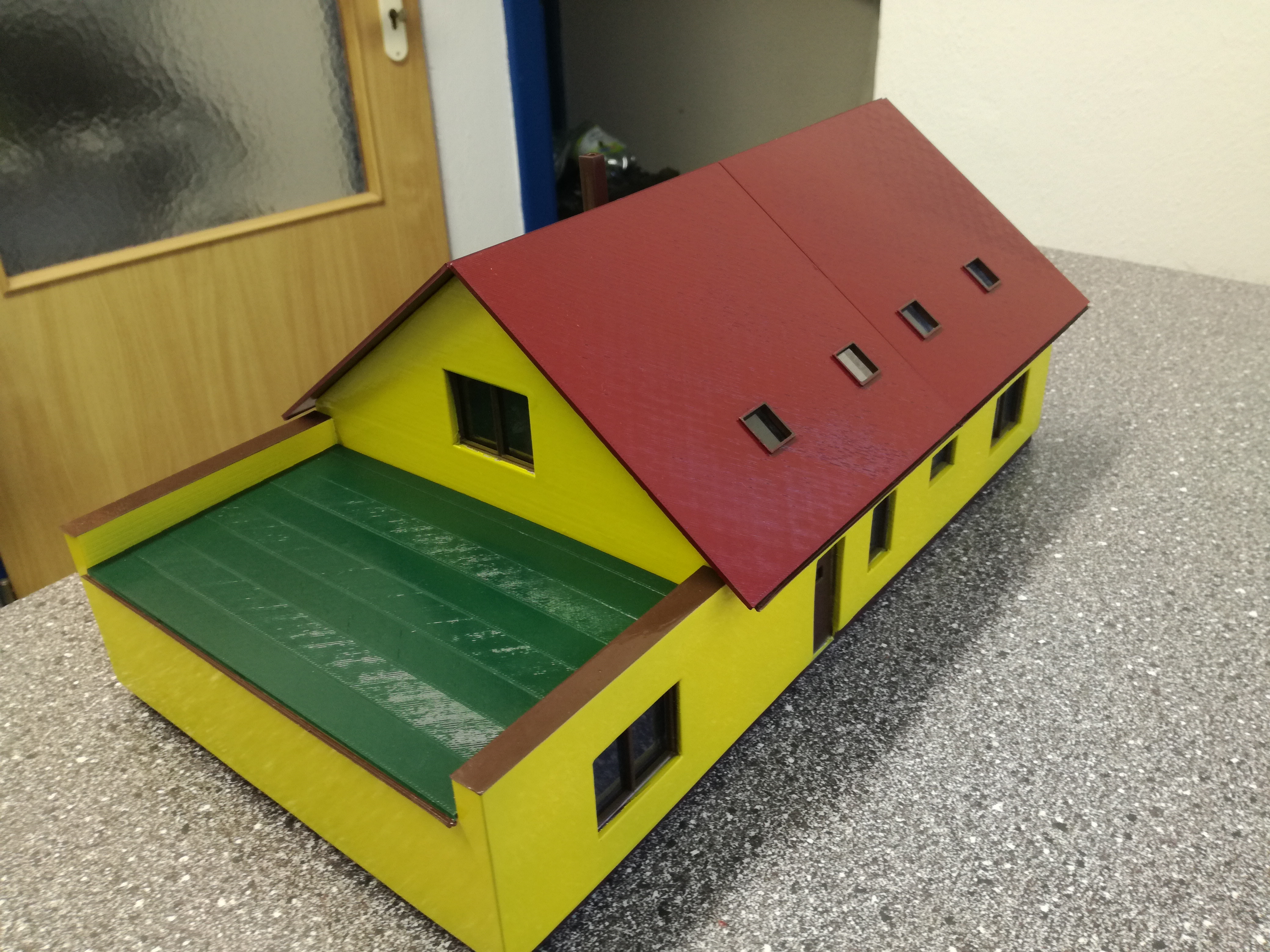 všechno kromě střechny je tisknuté na šup, okna, dveře, vrata, závětří nic není dosazované.