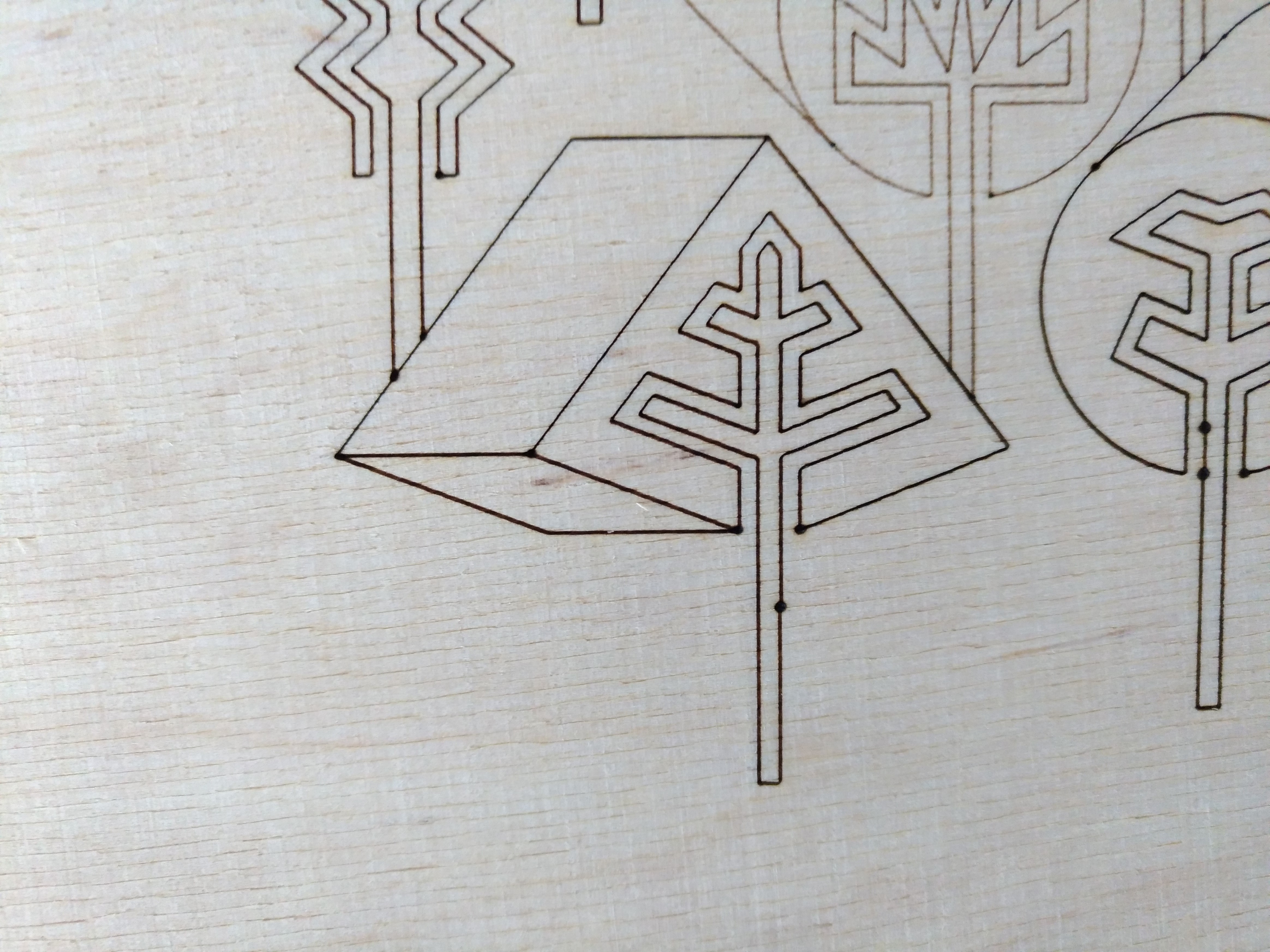 Mašina je z USA, už má pár rokov a bola kúpená t.j. nastavená ako na frézu. Ak myslíš driverom tú skrinku tak tá je Zenbot(ako aj celé cnc). Keď generujem g kód cez mach 3 tak napr. v kružniciach má väčšiu rýchlosť a v osách menšiu(vždy to prerábam lebo ten rozdiel je viditeľný pri pálení) takže nastavujem rovnakú rýchlosť všade. Problém je to opozdenie na začiatku, spustí/zopne laser a rozbehne sa vždy cca o 0.5 sekundy a vtedy spôsobí tú prepálenú dierku(viď foto). Zopnutie a vypnutie laseru je riešené cez relé. Snažil som sa to riešiť zopínanim M10 a vypnutím M11 namiesto klasického M3/M5. Výsledok je lepší, aspoň sa mi zdá, ale stále tam je prepal. V základnom configu mach3 mám vypnuté omeškanie ale to nič nerieši. Ešte to robí aj to, keď je toho viacej na pálenie v jednom spustení(väčšia vec), spočiatku páli čiaru tenkú resp. slabú a po chvíli je pálenie silnejšie/zretelnejšie a to si potom udrží do konca (je to spôsobené zohriatím, či nejakým výkyvom v napájaní?).
