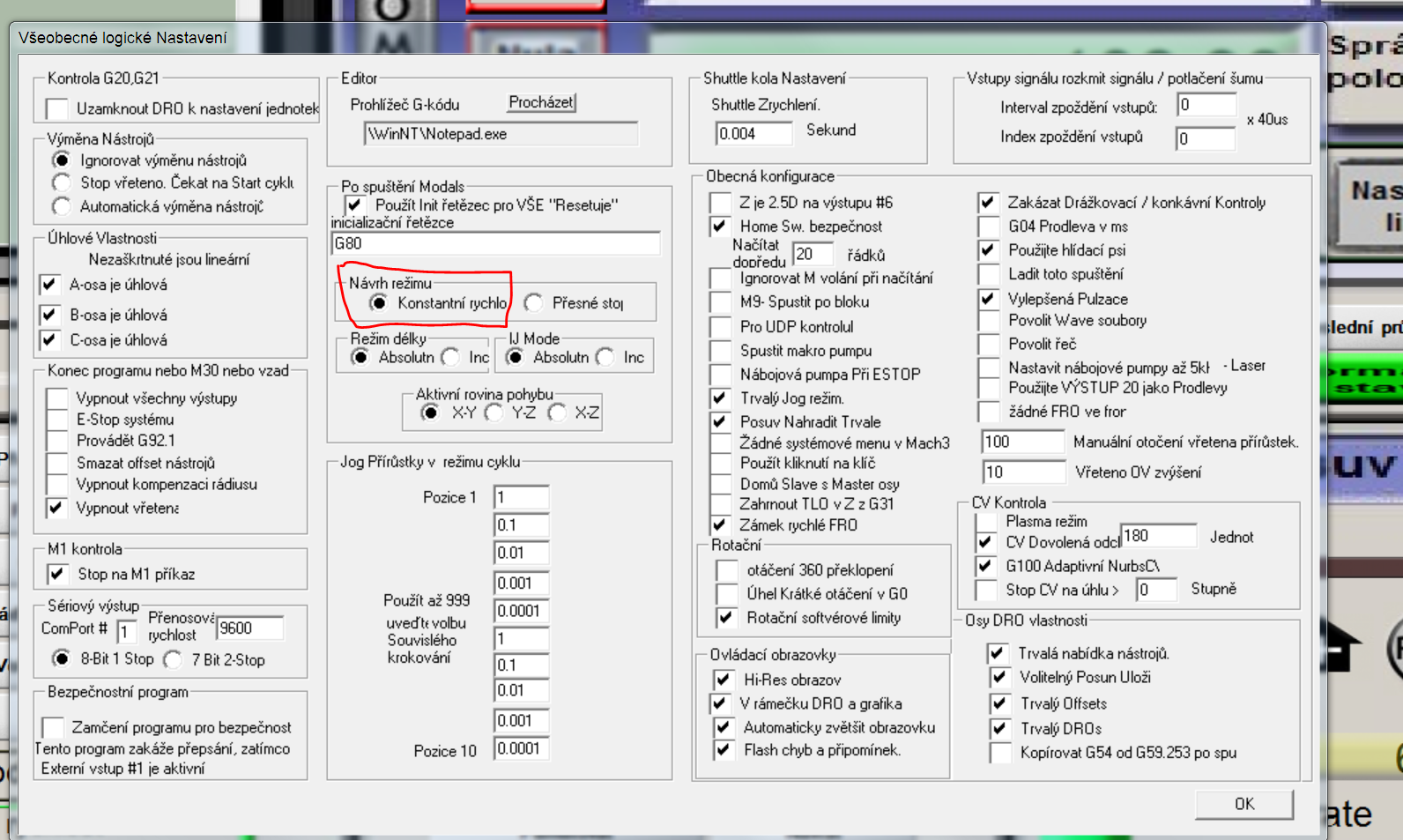 To som zaklikol..ta konstantna rychlost vretena je kde?nastavenie vretena v configu?