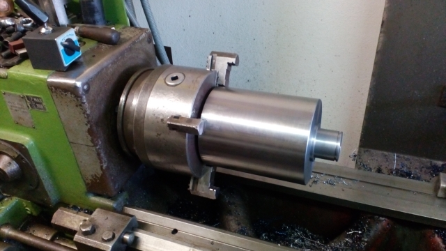 Včera se nahrubo soustružilo na 52mm s přídavkem na broušení, řezal se závit, drážka na pero.