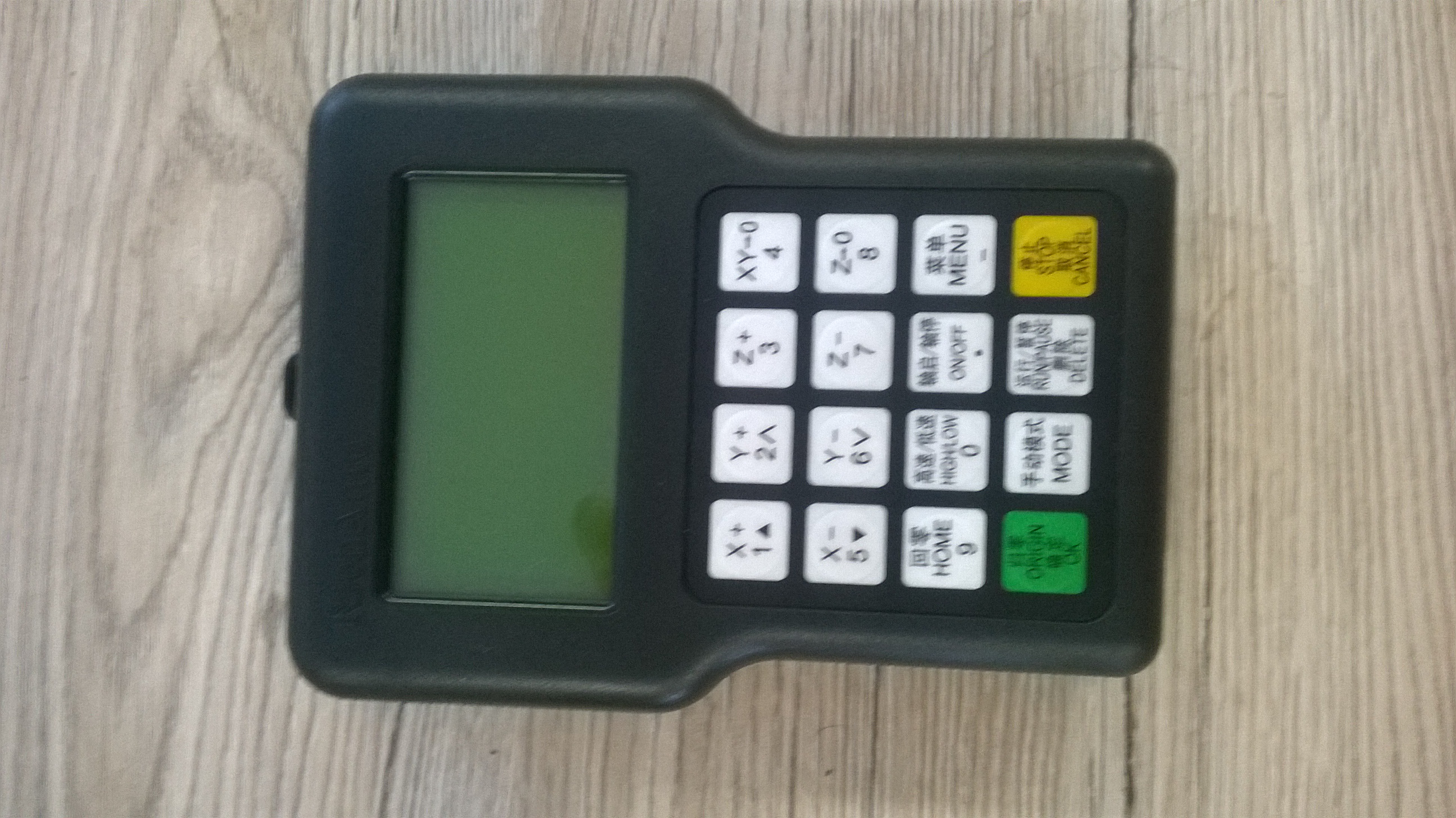 Ovladač je vymontován z nově dovezené frézky, kde si dávám ze zvyku Linuxcnc a tím pádem je prakticky nepoužitý a hlavně je nastavený pro řízení 3 krokových motorů, invertoru vřetene a koncových spínačů. G kód se nahrává přes USB vstup ovladače.