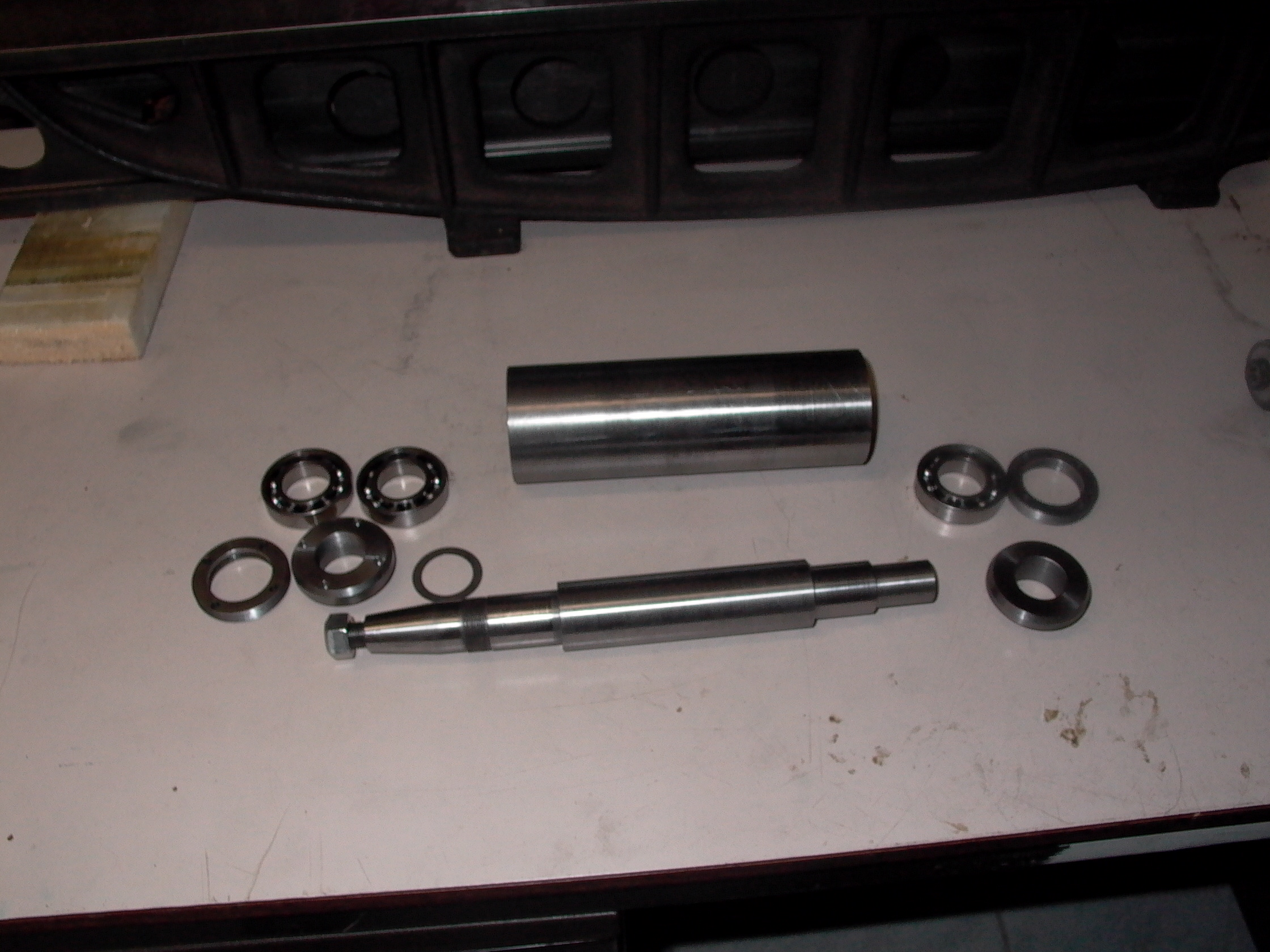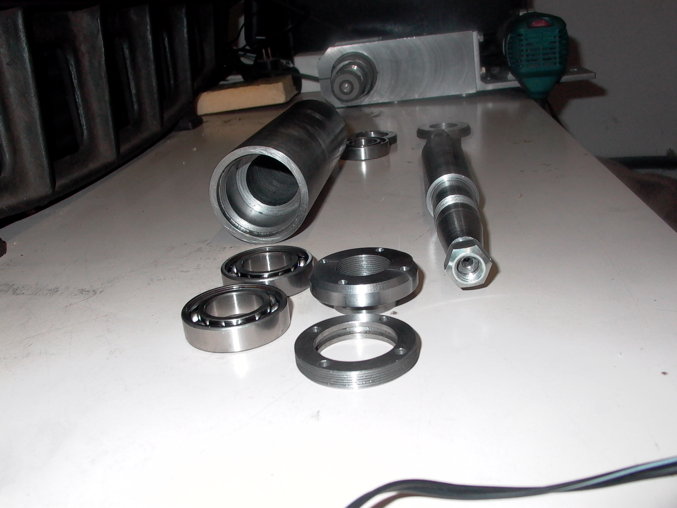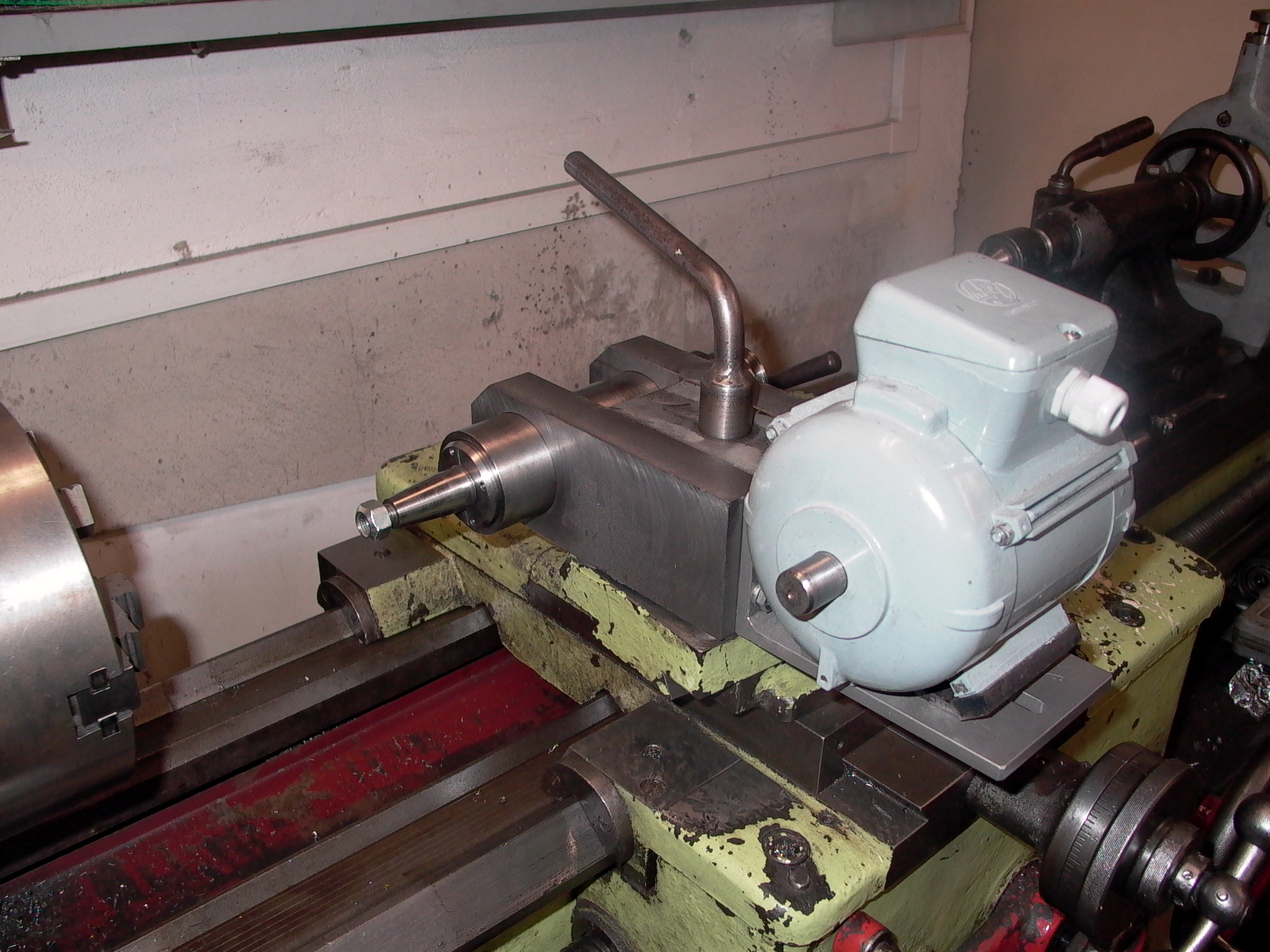 tovární vřeteno do 35k/ot.Vnější broušení /rozpracováno/,motor 750W/2800 ot.vřeteno vlastní výroby ,příruby na