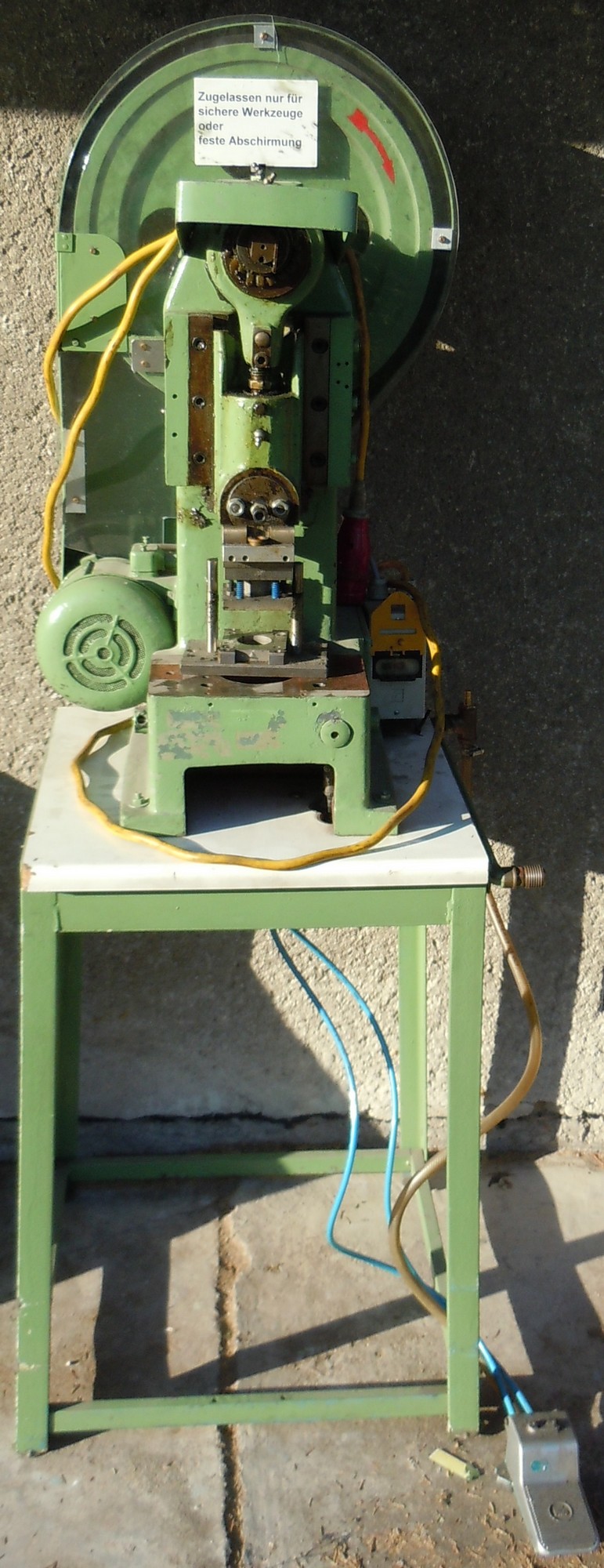 šestihranným razníkem do předvrtaného otvoru, karuselový podavač kusů a dva lidi to nestačily obouručně zakládat střílelo to ven 2ks za sekundu