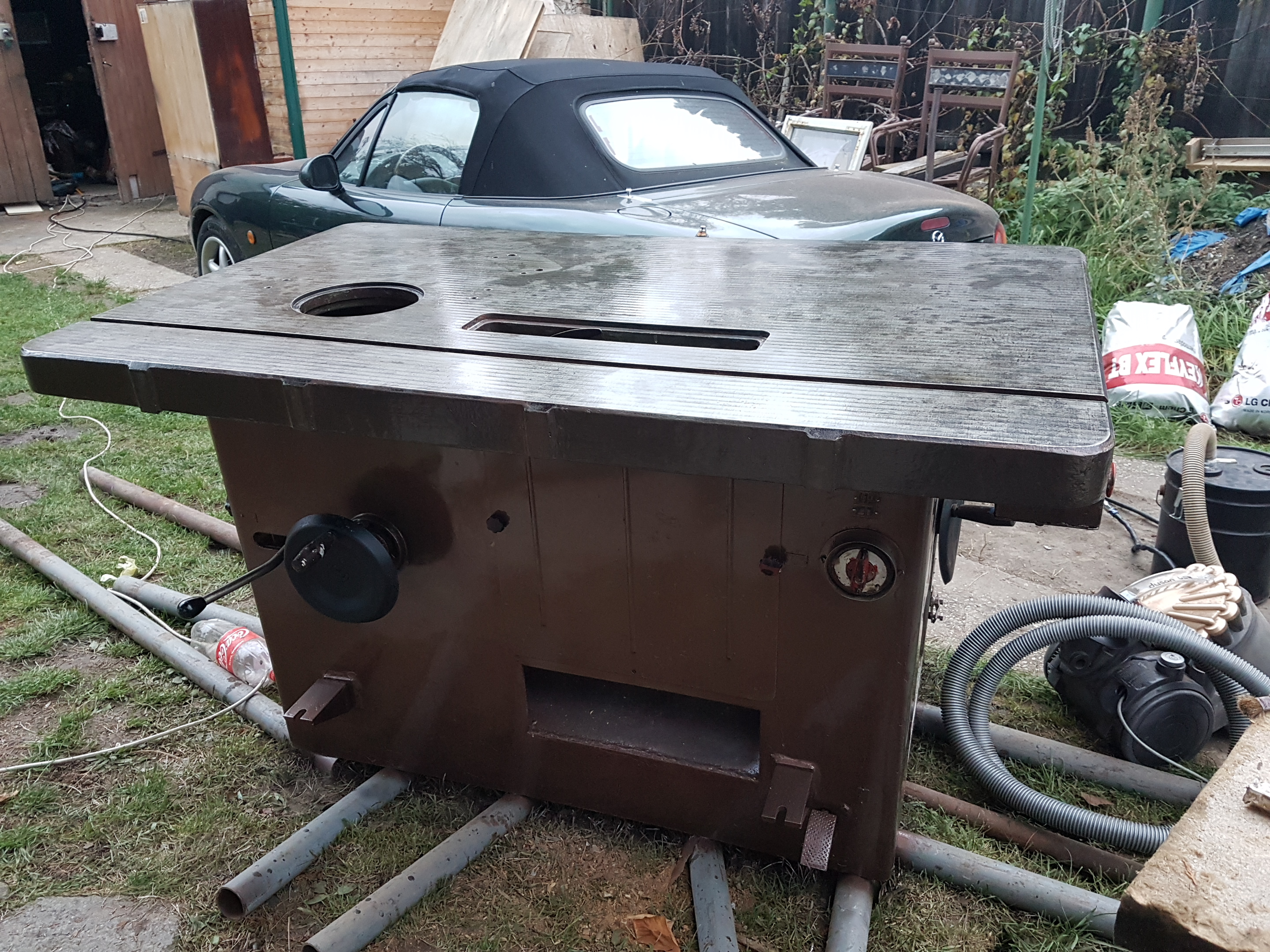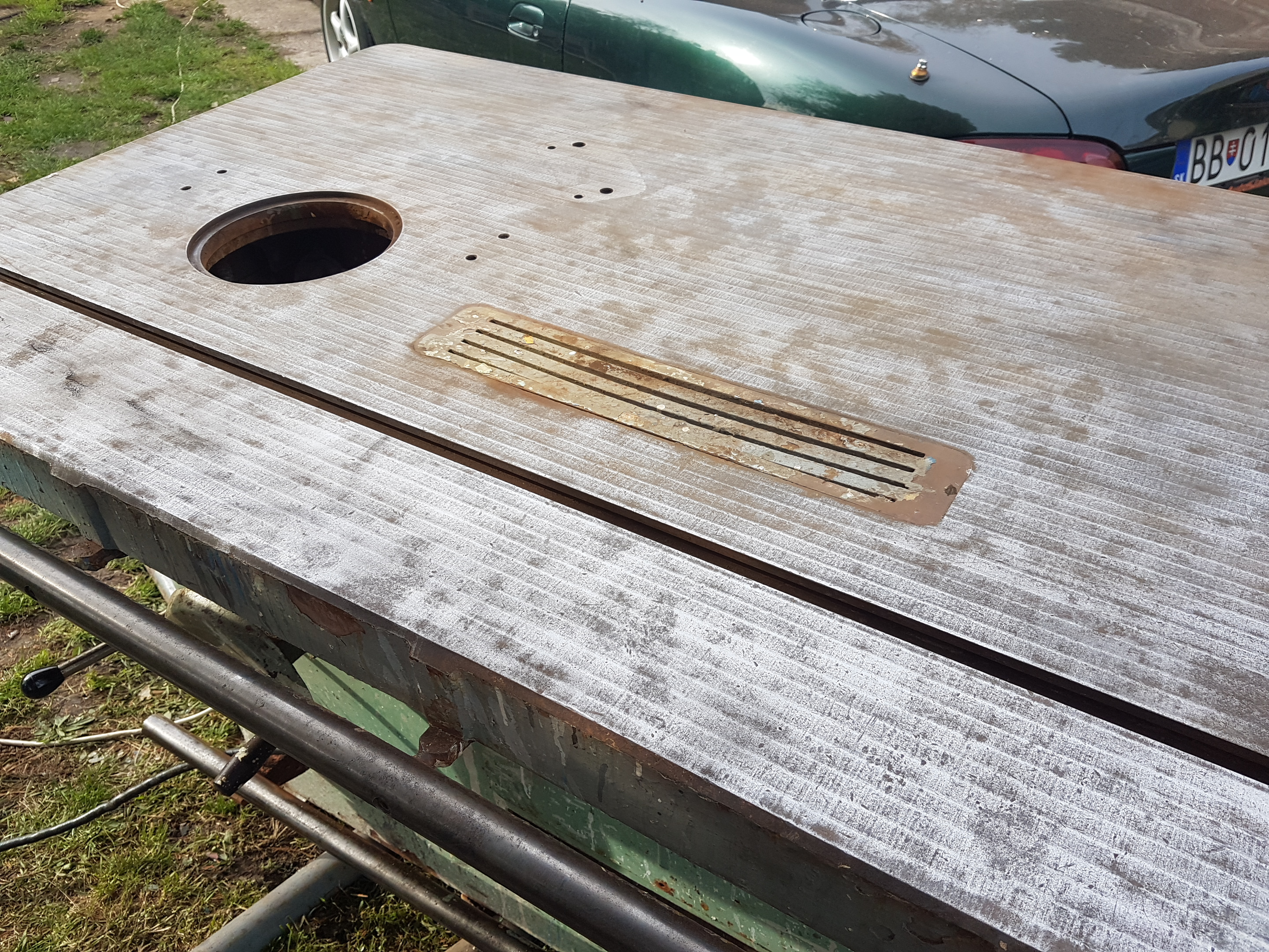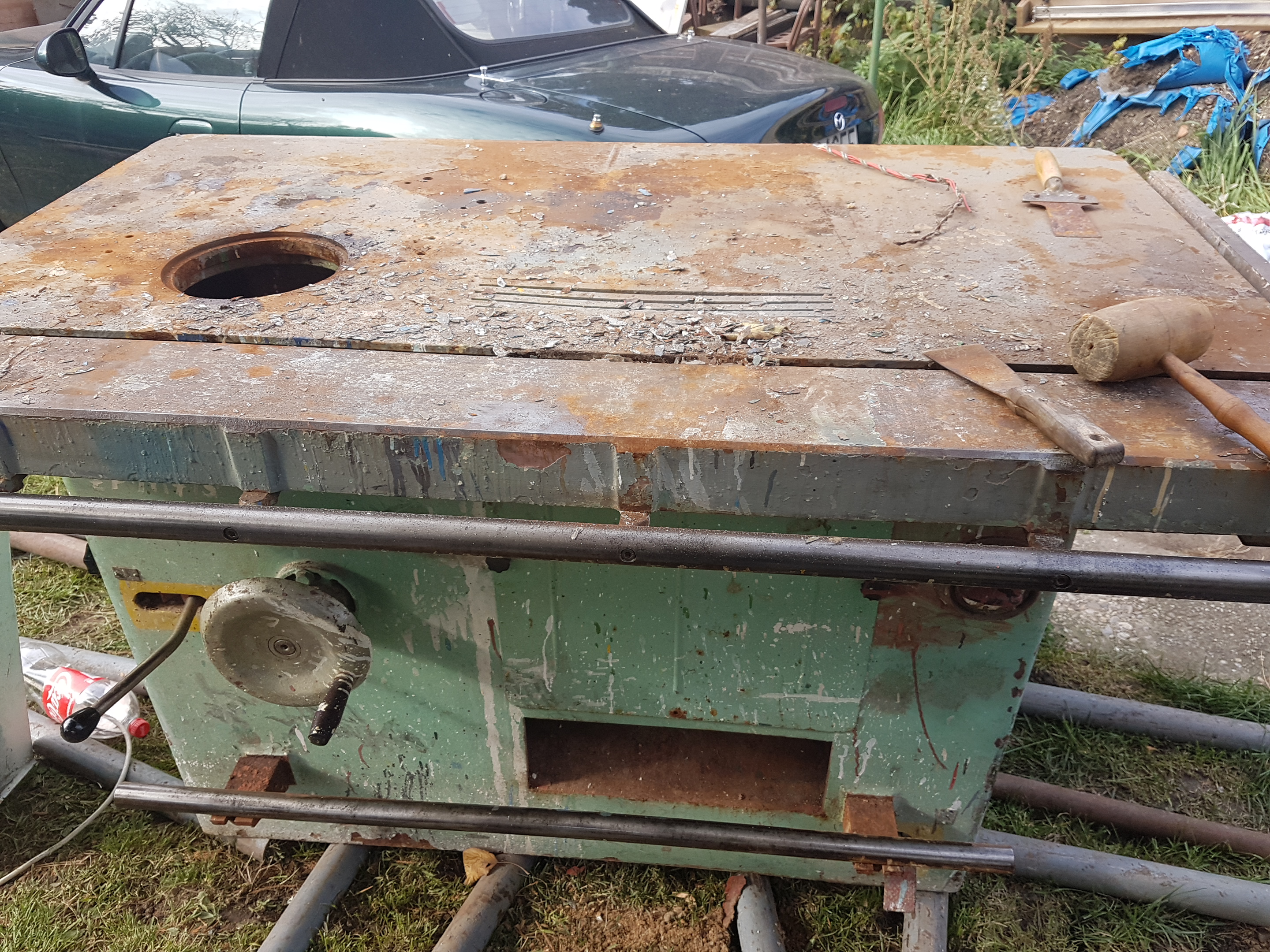 Ola zo slovenska, uz dlhsi cas som chcel na zahradu poriadny ponk, a tiez urobit upgrade píly a spodnej frezky... a hla ho ... vola kamos ze nech dojdemmpozriet ze velky liatinovy stolik ..atd... no dojdem kukam a to chudatko Polsky kombistroj Jaroma DYFC....samozrejme zely zasra.ý od farby atd.. osekane kable a bez priecnikov a pravitiek...no neva... 830kg.... na makeshift ponk, pilu, spodnu frezu ....za 200€ beriem..