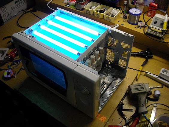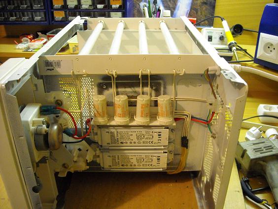 Vzdálenost cca 15 cm, a teď si nejsem jistej jestli jsem dvě trubice nepootočil a nevyřadil je. Časovač je tam manuální, ale příště bych šáhl po mikrovlnce s digi časovačem, ten je po vteřinách, jinak je to prakticky sestrojený zadarmo. Takže takovej tip jak by sis mohl pomoct nemusel na nic čekat a třeba i platit :idea: