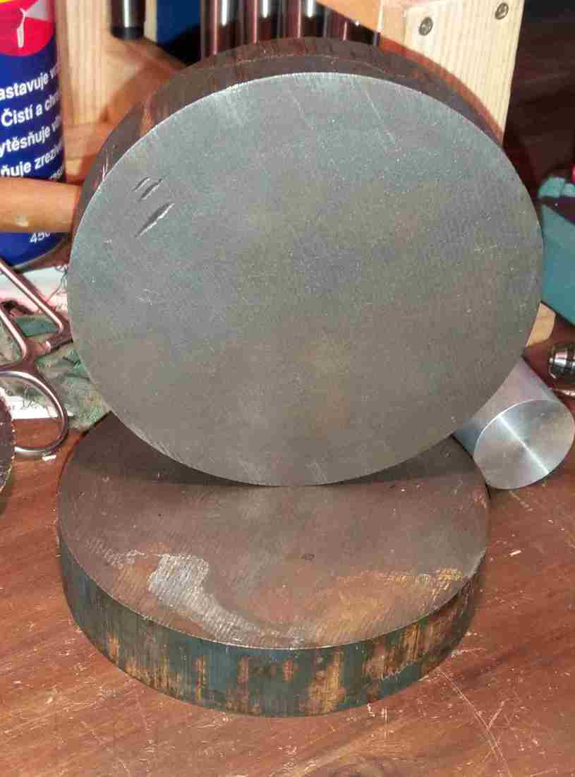 Jako materál jsem použil litinu z UNIBARu pruměru 100mm Unibar 250 Pak jsme si změřil Pro přípravek je 100 mm dostatečných.