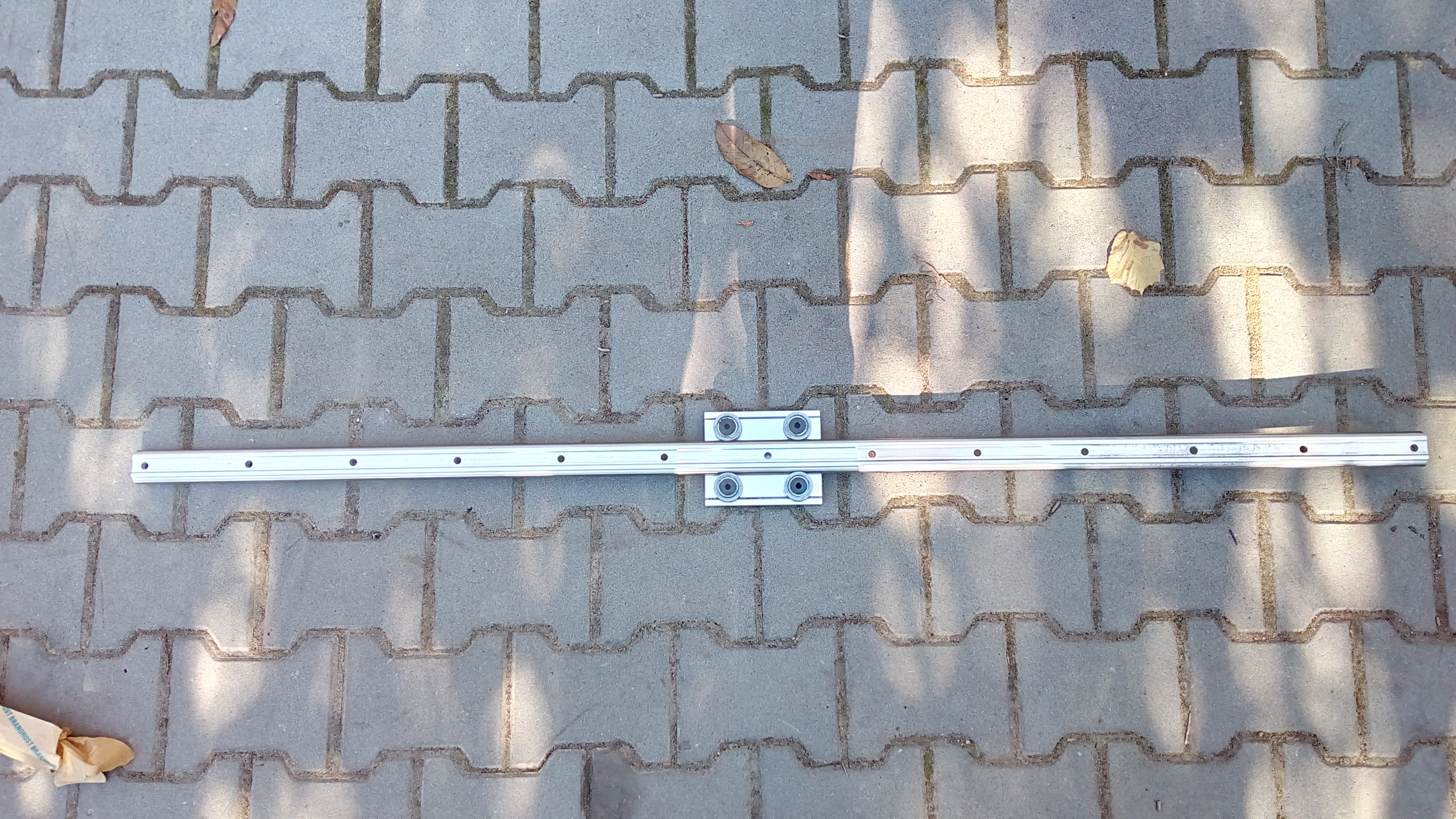 Vedení linear delky 1500mm, 1 vozik 4 kolecka. Rozmery na vykresu.cena 800 Kč