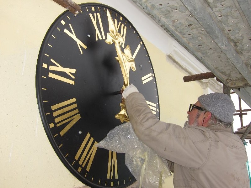 Trochu ti nerozumím. Tohle jsou ručičky co jsme montovali včera. Já je tvaroval z Cu plechu podle zkorodovaného originálu, hodinář je pak nýtoval na původní železnou kostru (pokud z ní něco zbylo), natíral a zlatil. Taky ciferníky jsou nově dělané z nerezu, čísla zlacené.Pepa z depa píše:... Ale ty tvoje ruce, to už nejsou ručičky až budou na věži, vyfoť prosím, to bude určitě "velkoparáda"