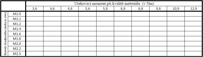 Tady najdeš šroubečky, je jich dost. Ale stanovení utahovacího momentu je trochu něco jiného, než jej ukroutit ve svěráku. Jen okrajově – v napětí ve spoji se běžně kalkuluje s koeficientem tření: = 0,14 – nikdy to neutahuješ „na tvrdo“, to hrozí, že serveš závit matice (v mém případě: nerezový šroub / matice (těleso přístroje) z lehké slitiny).