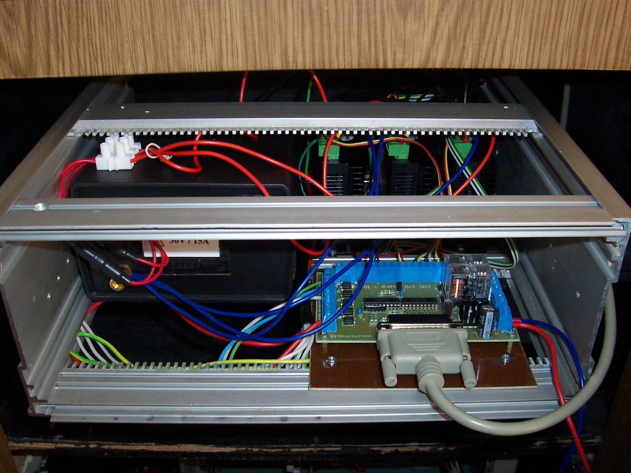 Nedávno dorazila elektronika z cnc shopu, mám tu tedy 3x M542 (4,2A 50V) a desku. Původně jsem se pokoušel postavit vlastní drivery, ale příliš se nedařilo (ikdyž to fungovalo celkem schopně, ale přes tranzistorový analogový omezovač to trochu více topilo, na PWM mi štěstí nepřálo).. rozhodl jsem se že se nebudu dal trápit s hotovou mechanikou mašiny bez elektroniky a nakoupil něco pořádnýho