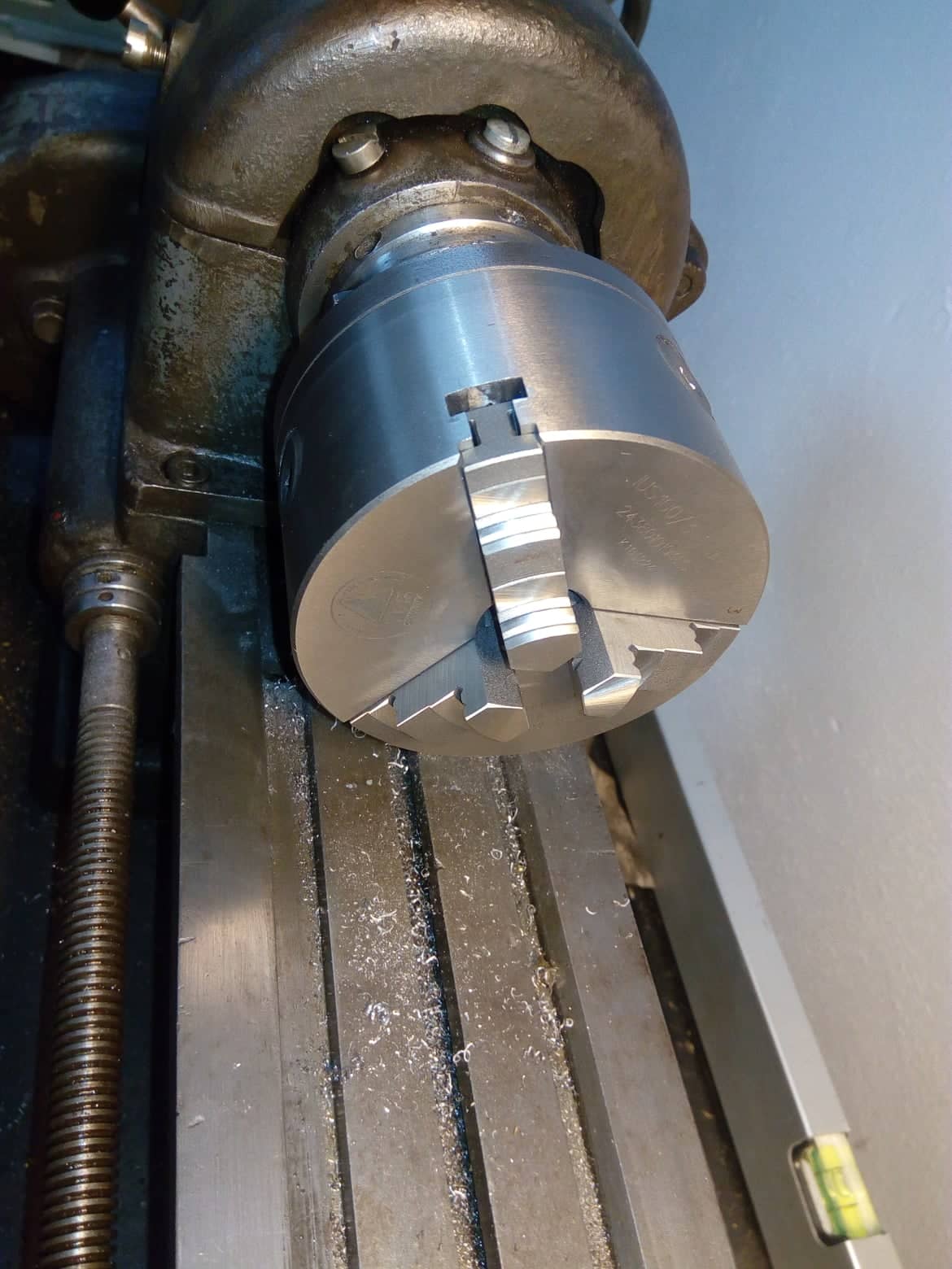 Takže problém číslo jedna vyřešen! Házivost vřetene je naštěstí do jedné setiny a nová přesná univerzálka po upnutí a vystředění hází max 2 setiny.