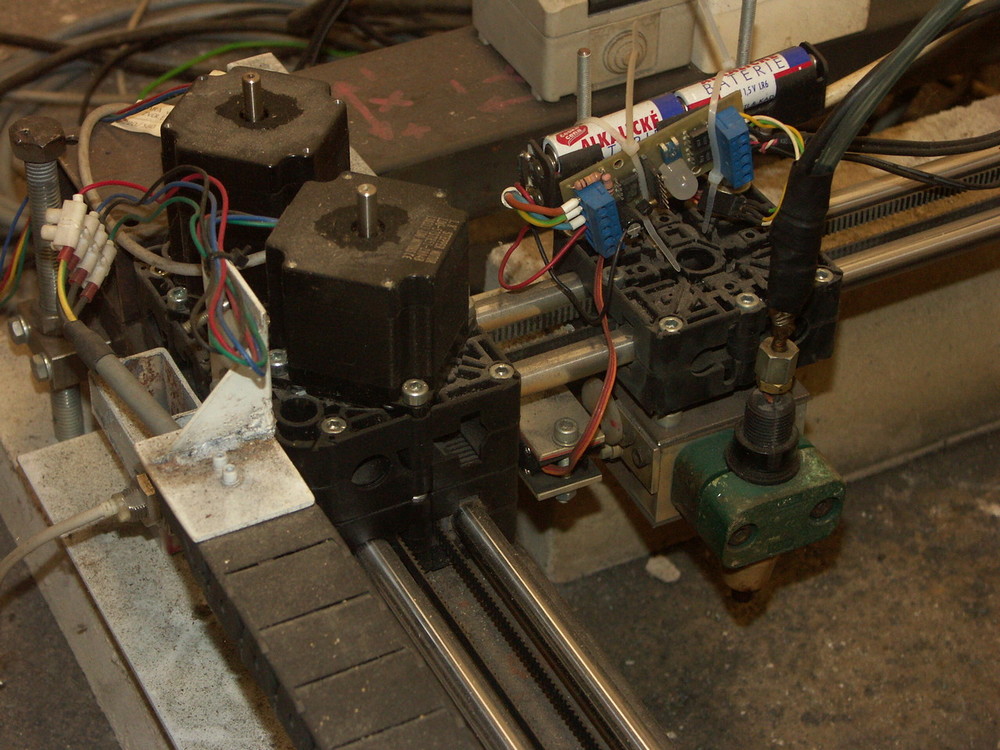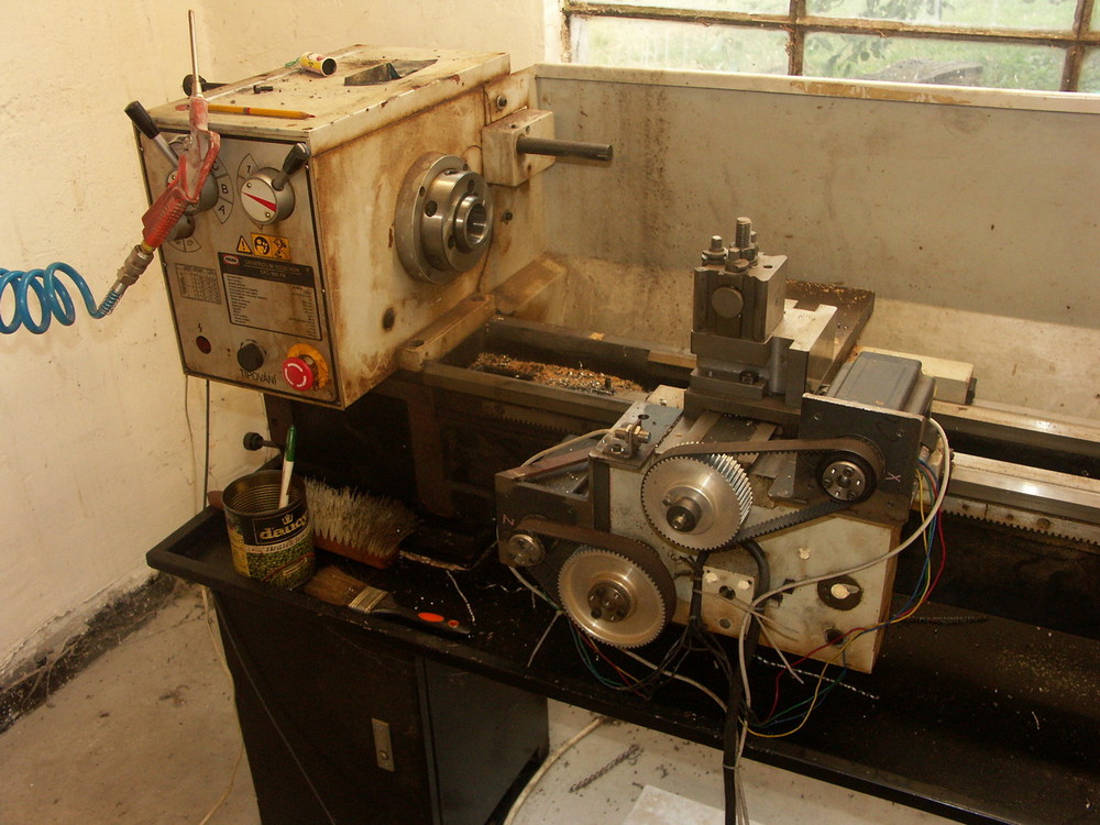 Prodám soustruh Proma přestavěný na CNC. Cena 10 000Kč, funkční možno vyzkoušet, k vyzvednutí v Pravčicích okres Kroměříž. Na soustruh byly co nejjednodušeji pověšeny dvoufázové krokové motory 8,5Nm (řemenice místo ručních kliček), součástí jsou zdroje, drivery, oddělovací karta a starší PC pro řízení (Linux, EMC). K tomu navíc veškeré demontované díly - lze přestavět zpět na manuálně ovládaný soustruh. Tři sklíčidla - původní 160 tříčelisťovka, 200 čtyř a dokoupené Bison 160. Dále pak dvě původní lunety, lícní deska, několik sad měkkých čelistí pro Bisona. Na soustruhu je namontován rychlovýměnný nástrojový držák Bison, takže přiložíme i veškeré držáky které mám. Navíc jako bonus přidám nějaké ty Morse redukce, vrtačkové sklíčidla, válcové redukce, kleštinové držáky pro kleštiny ER16 a ER20, taky pár ER kleštin, otočné a pevné hroty a pár vrtáků a nožů s konvolutem VBD. Jak by pravil Horst Fuchs: "A to stále ještě není vše, kdo odpoví do nevidim obdrží jako zvláštní bonus rovněž zcela zdarma ještě dvouosý suport pro plazmový hořák (nepodepřené tyče 12mm, ozubené řemeny, rozjezd cca 600×1000mm, rám z jeklů 40×80mm) včetně zdroje, driveru a staršího PC (taky Linux EMC). Bez plazmového agregátu, ten si nechám.