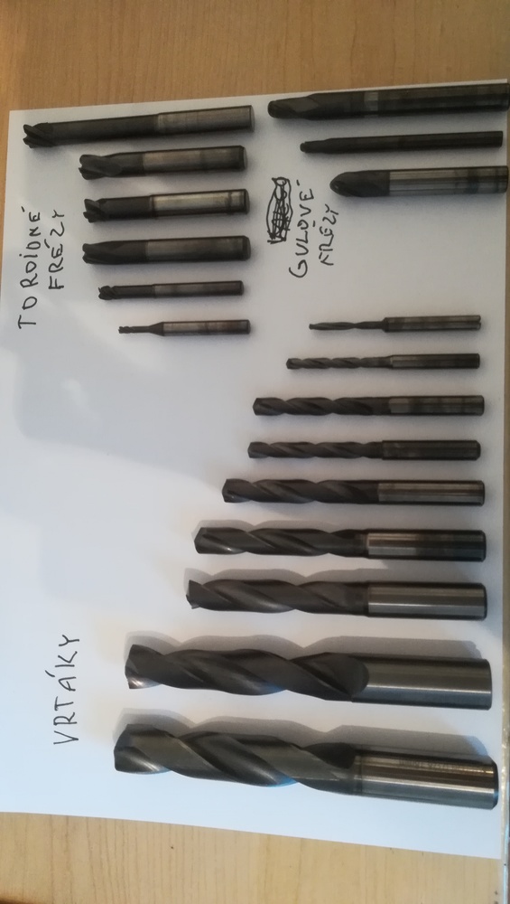 Vrtaky,frézy použité vhodné ihneď k obrabaniu no nutné časom prebrusit :