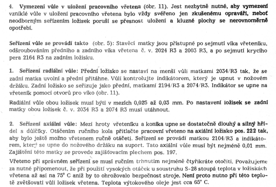 Seřízení vůle vřetene je v manuálu popsáno takto: