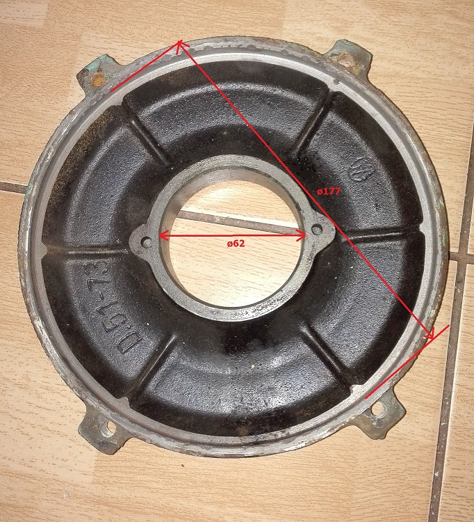 nemá někdo zbytečný ložiskový štít viz. obrázky nebo alespoň podobný z nějakého starého motoru nebo nějaký zbytek materiálu (litiny), ze kterého bych ho vyrobil? Mám rozbitý zadní, ale přední je stejný, jen má navíc ten kroužek. Proto jsem oměřil přední.