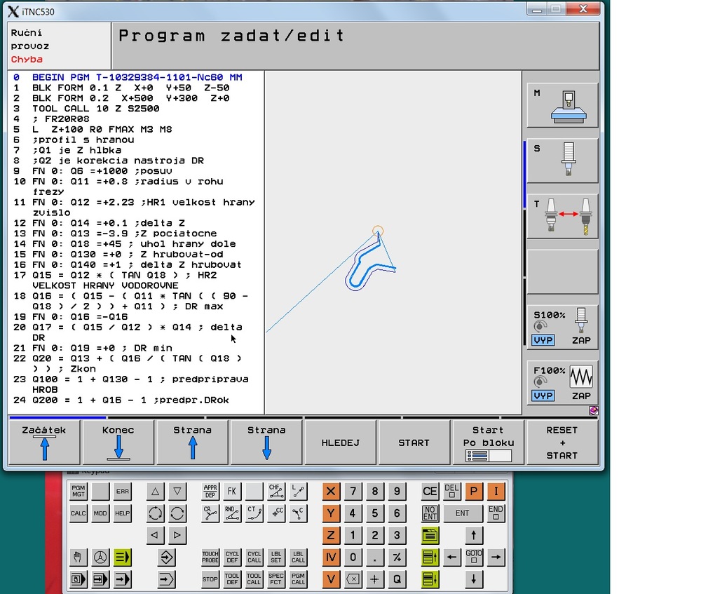 mám problém při simulování v iTNC530. S tímto programem pracuji jen krátce a nevím jestli jsem nechtě změnila nějaké nastavení a nebo dělám jinou chybu.