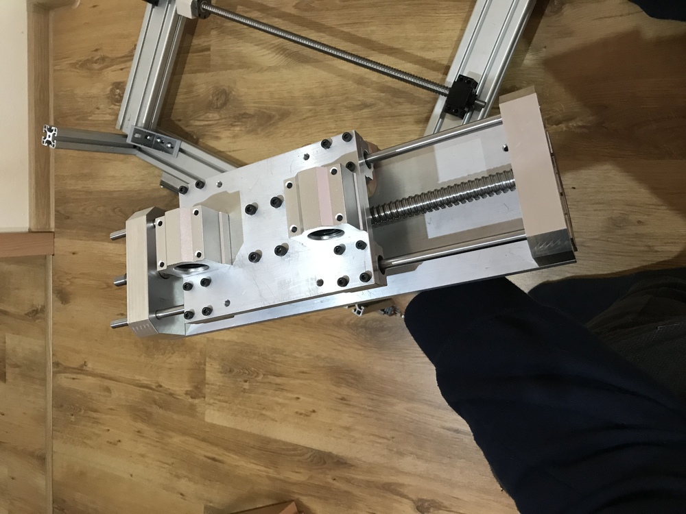 CNC si stavám ako maturitnú prácu, ale predovšetkým pre svoje použitie keďže vela experimentujem a často potrebujem urobiť aj profesionálny plošný spoj. Niektoré časti stroja mam poskladané z hliníkových profilov item a niektoré mam zasa duralové platne. Všetky časti sú frézované s veľkou presnosťou. Ako lineárne vedenie Y osi mám použité HSR vedenia a zvyšné vedenia sú nepodopreté tyče s guličkovými ložiskami. Pre pohyb som použil skrutkové tyče s priemer 16mm a so stúpaním 5mm.