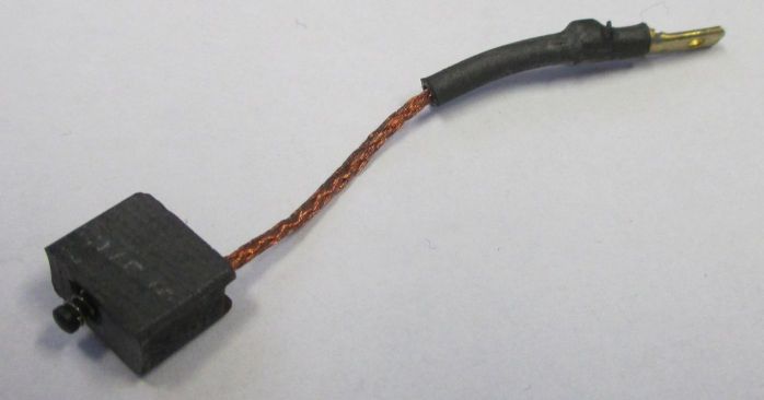 ( nastesti jsem to stihnul stopnout ). Uvnitr uhliku je plastovy "hribek" tlaceny perkem. Az se uhlik opotrebuje az ke "hribku", tak jej perko vytlaci a uhlik se jiz nedotyka komutatoru a vreteno se zastavi. "Hribek" vcetne perka lze z uhliku vytahnout a kratkodobe vreteno provozovat nez budou uhliky nove.