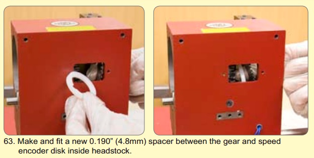 For the spindle tapered roller bearings have made seals from automotive jointing material. Seals were made after calculating dimensions of the bearing housings on the headstock and bearing dimensions. The jointing material used is 0.7mm thick, and each seal was made in three parts in order to make clearance for the bearing. As new bearings are 1.25mm thicker than the original ball bearings, two 0.7mm parts of each seal are actually spacers.