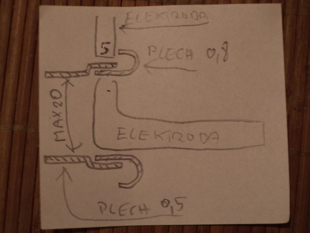 Poptával jsem neúspěšně již na několika fórech tak to v zoufalství ještě zkusím tady. Hledání vhodné bodovky bych přirovnal k hledání svatého grálu. Teda ono by se nějaké našly, ale ty jsou přes celou republiku, nebo to byly jen sliby chyby a skutek utek. Poptávám tedy bodové svaření drobných plechových dílů jeden je z 0,8mm, druhý je z 0,5mm ocelového černého plechu, zakopaný pes je v tom, že spodní elektroda nesmí být vyšší než 20mm, aby šla prostrčit otvorem který má právě kolem 20mm. viz foto. Prosím jen okolí MB, nehlaste se všichni, stačí mi jen jeden ochotný člověk který si na to troufne. Poslední podmínkou je moje fyzická přítomnost, kvůli dodržení správné polohy bodovaných plechů.