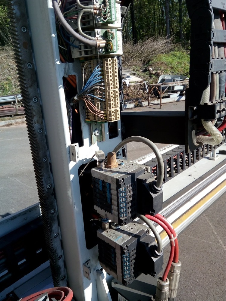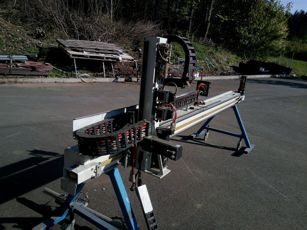 Na všech osách jsou silné serva s převodovkami, kabeláží a pohon je řemenem. Je k tomu několik vzduchových rozvaděčů Elektronika k tomu není. Dobře by z toho šla udělat plazma nebo fréza na dřevo.