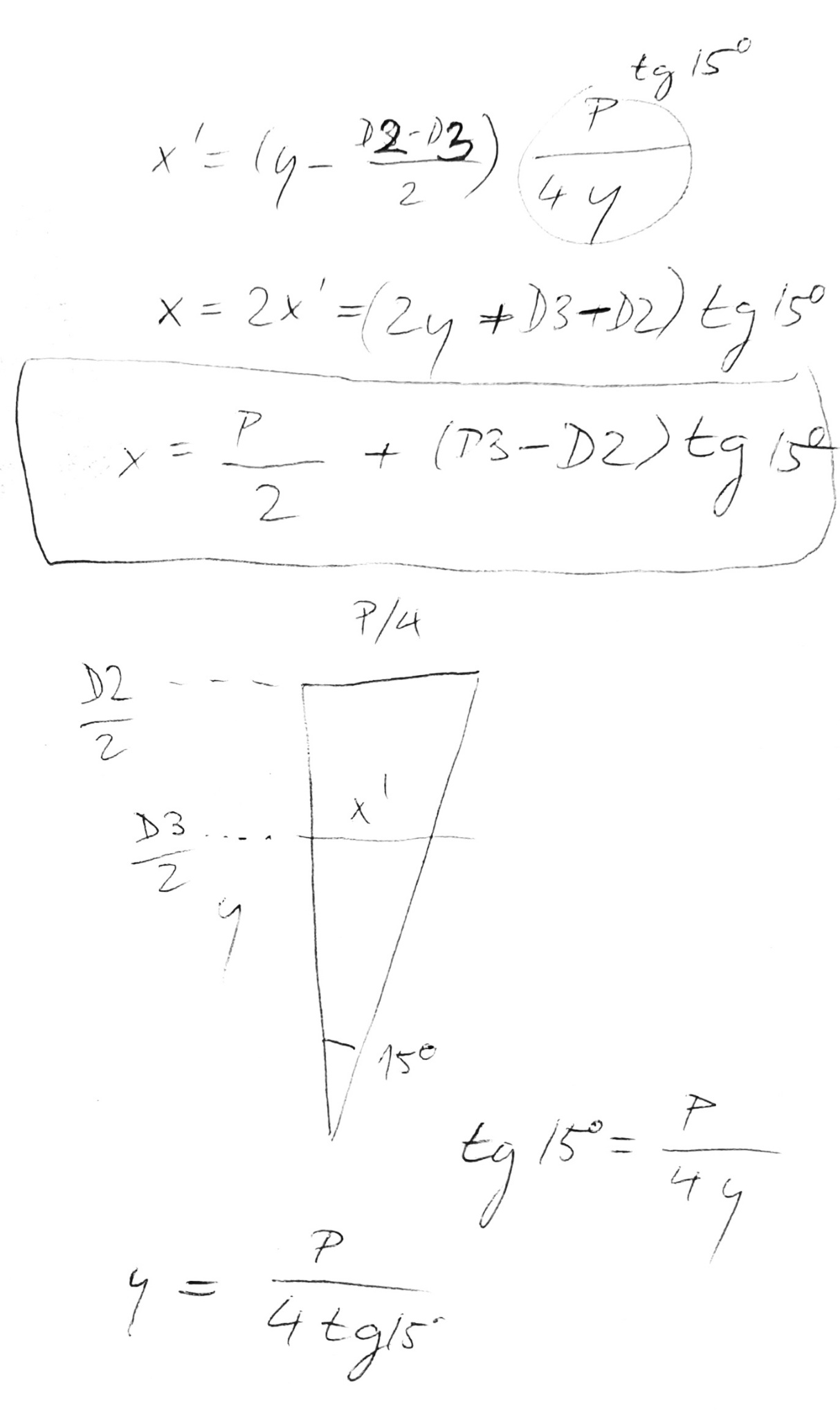Není D2 - D3 = D4 - D2? Vypadá to celkem symetricky. Hledal jsi X pro šroub jako v původním dotazu nebo pro matku (přemýšlím, jak se ti tam to D4 vůbec dostalo