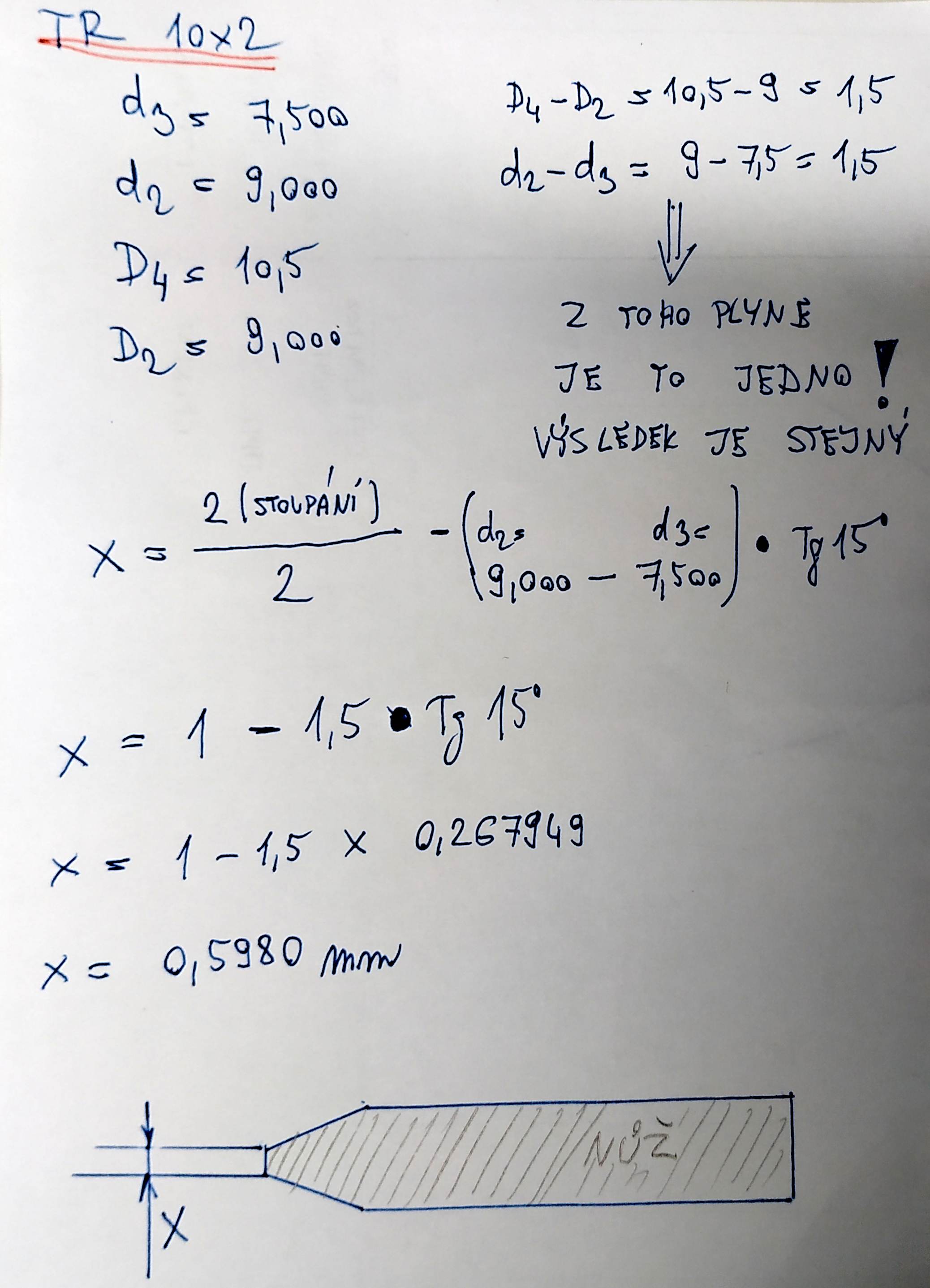 Potřebuji si vybrousit nožík na tr 10x2 a už hodinu počítám díky těmto příspěvku hodnotu X