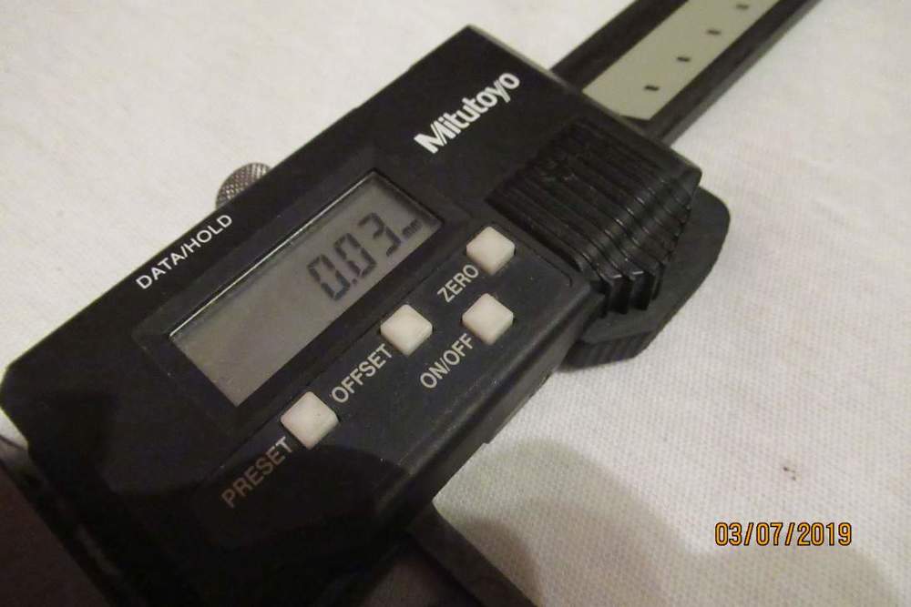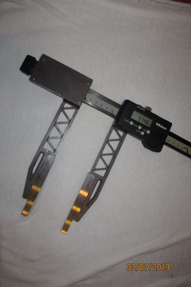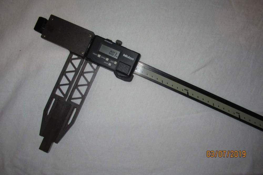 Kevlarová posuvka Mitutoyo 600mm s extrémně dlouhými packami. Když stlačuju na konci čelistí, tak měří co má, když se snažím měřit přes momentovou brzdu na tělese, tak nic moc. Tělo nevypadá nějak nerovnoměrně ochozené, takže to bude chtít doladit stavítkama. Preferuji aby to případný zájemce viděl předem viz úvodní text. Cena 2000Kč.