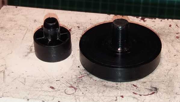 Porovnání dvou nožek staré - výlisek s plastové hmoty a plný materiál POM-C