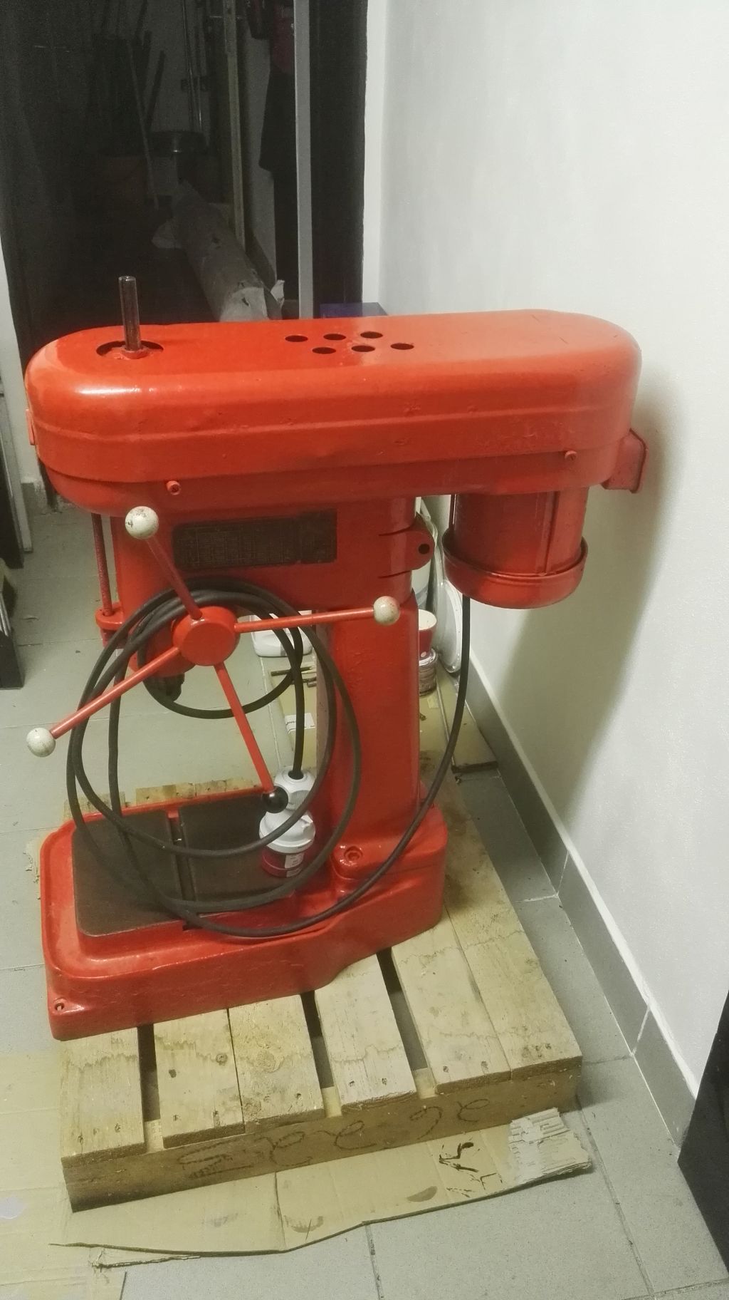 jsem naprostý amatér, co si chtěl koupit nějakou tu stolní vrtačku. Čím více jsem četl různé recenze, tím více jsem se přesvědčoval o tom, že koupě starší vrtačky bude asi lepší volba než moderní číňan :) Koupil jsem si tedy starou stolní vrtačku (viz foto níže) z rušeného truhlářství. Vrtačku asi sice nově nastříkali, ale nikde na ní není žádný štítek, tak nevím co je to vlastně zač.