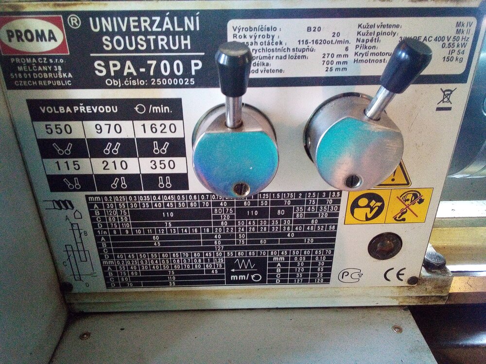 Prodám soustruh Proma SPA 700 P prodáno