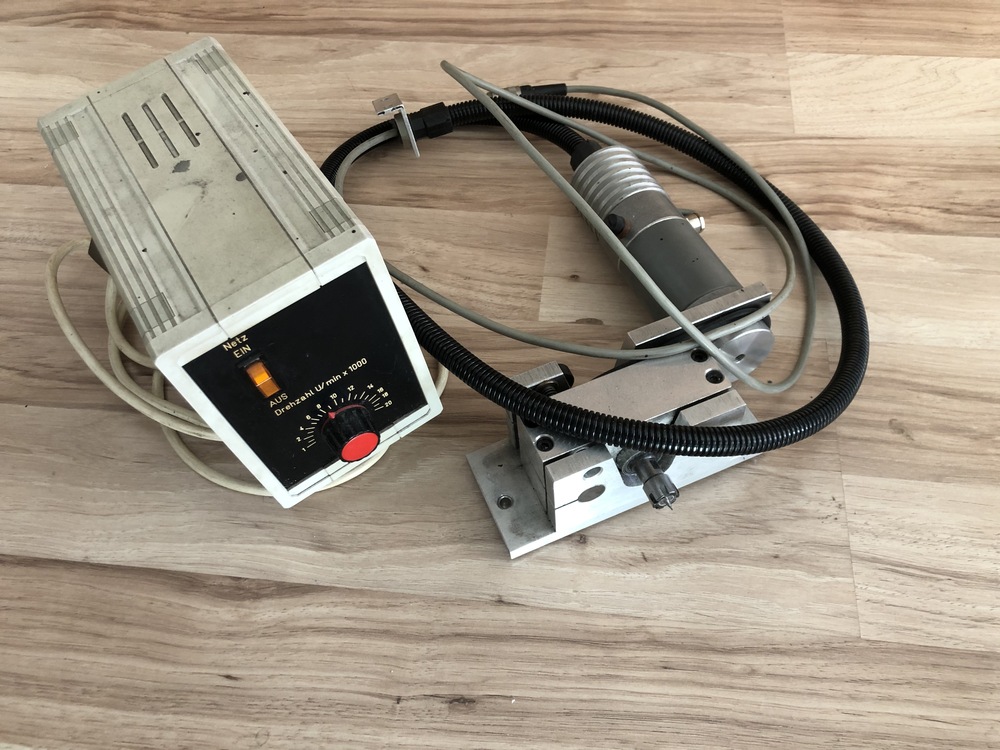 Na vřetenu ani měniči otáček není žádný štítek, parametry neznámé. Gumičkou poháněná kleština ER11.