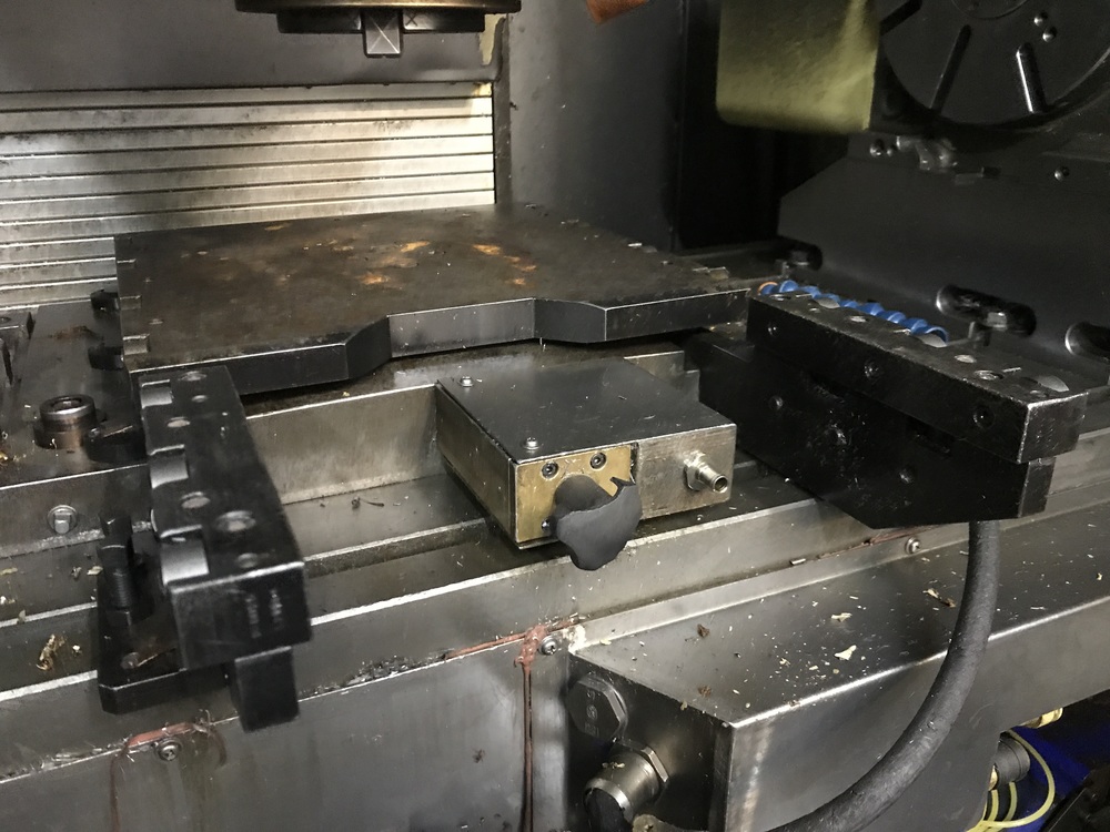 Prodám paletizační jednotku před CNC stroj jedná se o ruční výměnu palet upínanou vzduchem vše funkční jedna paleta ve stroji a jedna venku na výměnném stanovišti kde je možno si chystat další práci zatím co stroj obrábí je to manuální výměna žádná elektronika. výměna zabere asi 20s to znamená produktivnější obrábění bez zbytečných prostojů.