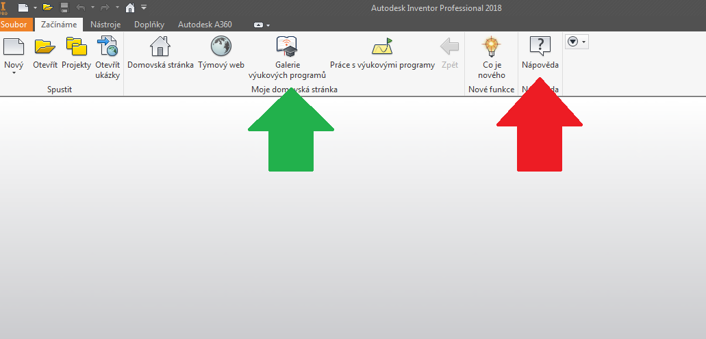 Když už zapnu Inventor jsou tam dvě možnosti - červená a zelena šipka.