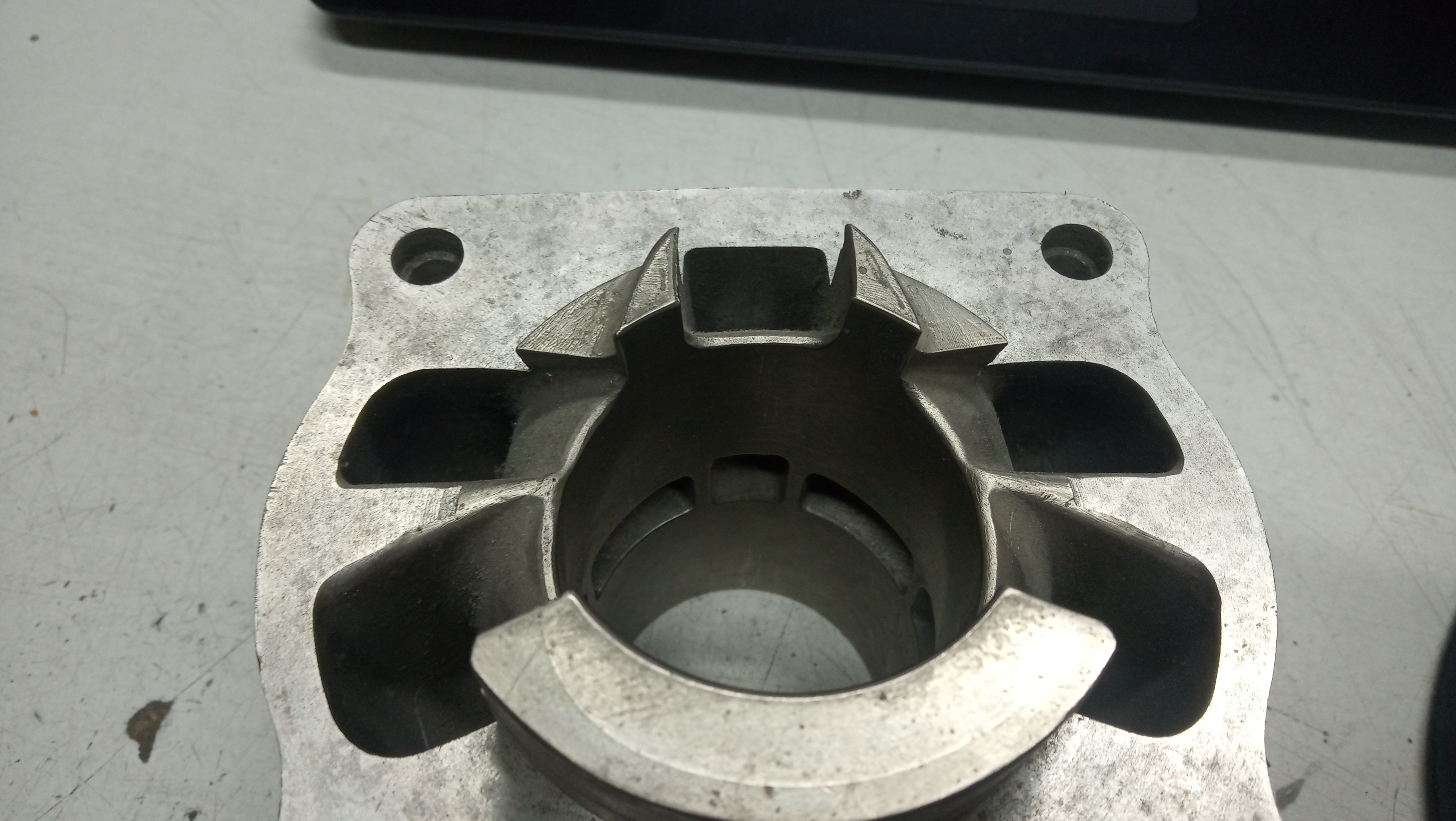 Uměl bys i vložky? Litina, vnitřní průměr 70 mm, 300 HB? Na matroš bych kouknul do tovární dokumentace. Mám tady takového veteránka ČZ, tak bych si to udělal na blbnutí. Jen už je vložka na konci životnosti a navíc bych to trochu přečasoval... Ten sací kanál s přepážkou je nic moc, navíc dva obdélníky .... vím, že je víc řešení pátého kanálů, ale u oválného se dělá lépe. Dělaly se i dvě díry do pístu, ale já to trochu předělal po stylu Hondy a spojil sací kanál s přepouštěcíma a chodilo to mnohem líp...