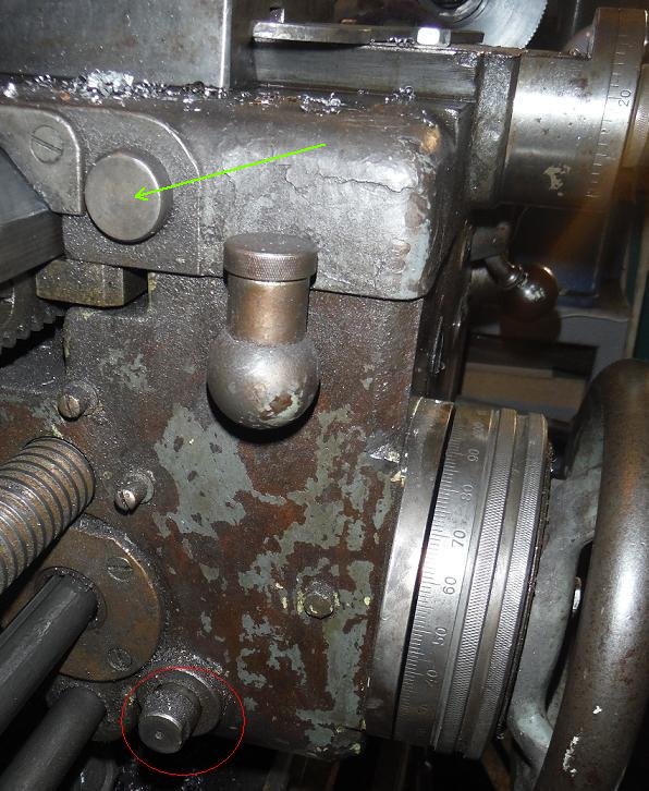 Ten pohyblivý čep, o kterém píšeš má nějaké plošky (je tedy zřetelně vidět jen jedna), jakoby na klíč - dá se s tím otáčet?. Tak mě napadá, jestli to náhodou neslouží na regulaci předepnutí pružiny, která udává moment vypnutí spojky strojního posuvu. Třeba je to jinak - nevím ten typ soustruhu co máš Ty jsem nikde neviděl. Takto je to na S-28: EDIT: