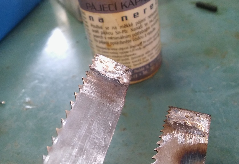 Jeste jste mi pripomneli jednu vec. Kdyz tu byla debata o tvrdem pajeni stribrem, tak jsem v navaznosti na to zkusil i mekke pajeni na cca 5-10mm prelozeny pas. Normalni olovnata pajka Pb-Sn 60/40.
