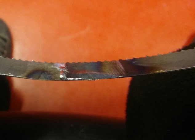Použil som 2kg PB flašu s horákom čo bol v klampiarskom sete. Nahrial som materiál a pájka krásne zatiekla do spoja. Po vychladnutí som spoj pásu jemne prebrúsil diamantovým plátkom. Zvar je presný a neskáče.