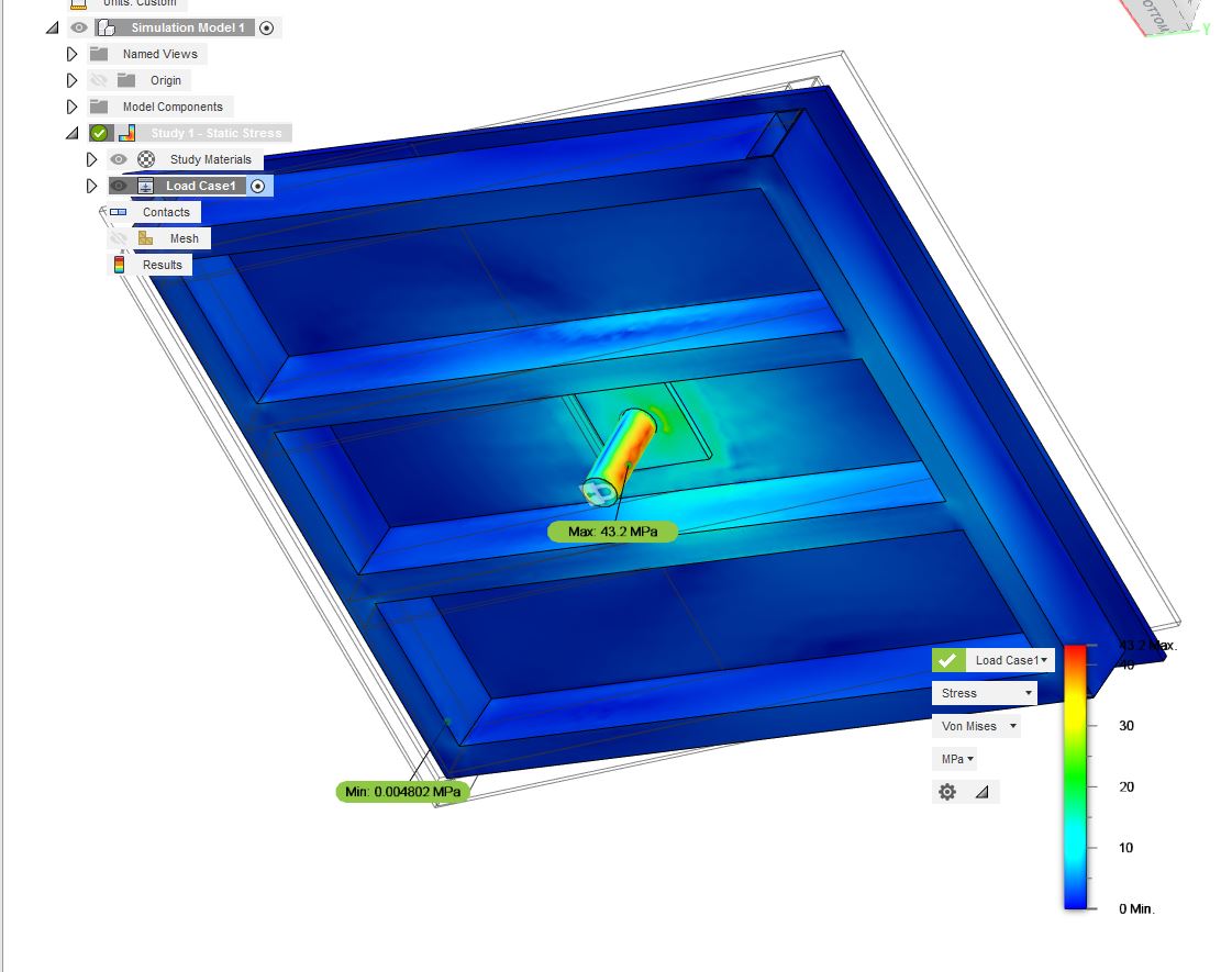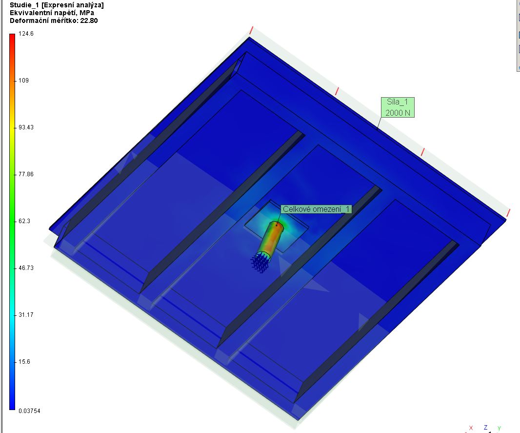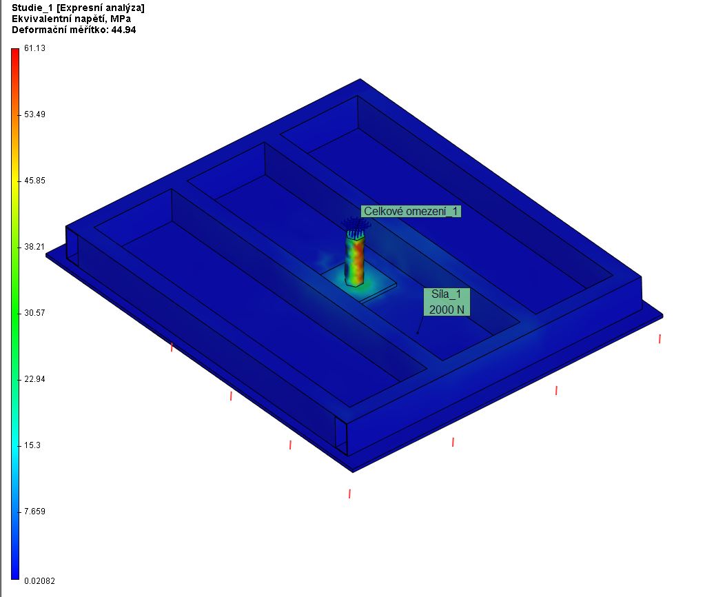 Takže pokud tomu dobře rozumím, tak při tomhle mém provedení (navařit na pevno čep na desku z P10-150x150 mm a tu desku potom přivařit na pevno k tomu stolu), se ten stůl po zatížení zdeformuje někde v místech, kde bude přivařená ta deska s čepem (75 mm od středu)? To jsem si tak nějak intuitivně myslel, že bude bez problému.