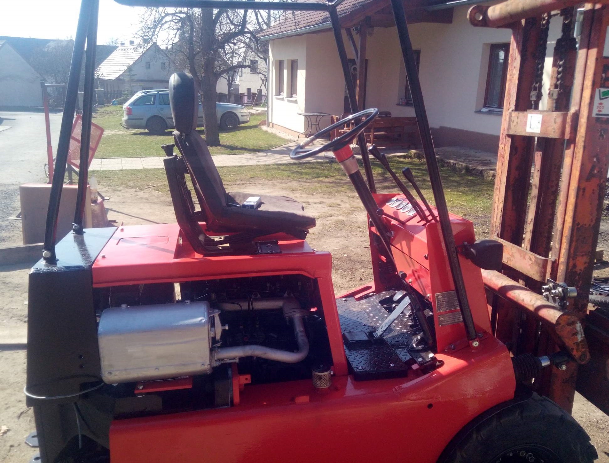 :) . To asi jo :) . Teď jsem vyhrabal malý podávky (vidle), tak už jsem hodil ke kotelně gitter box polínek. Včera jsem kecal s kámošem, tak budou nad otočný vidle. Hák už mám skoro hotovej. Pověsím hupcuk a můžu dávat do mašin těžký krámy. Primárně je to ale na stavbu nový dílny.