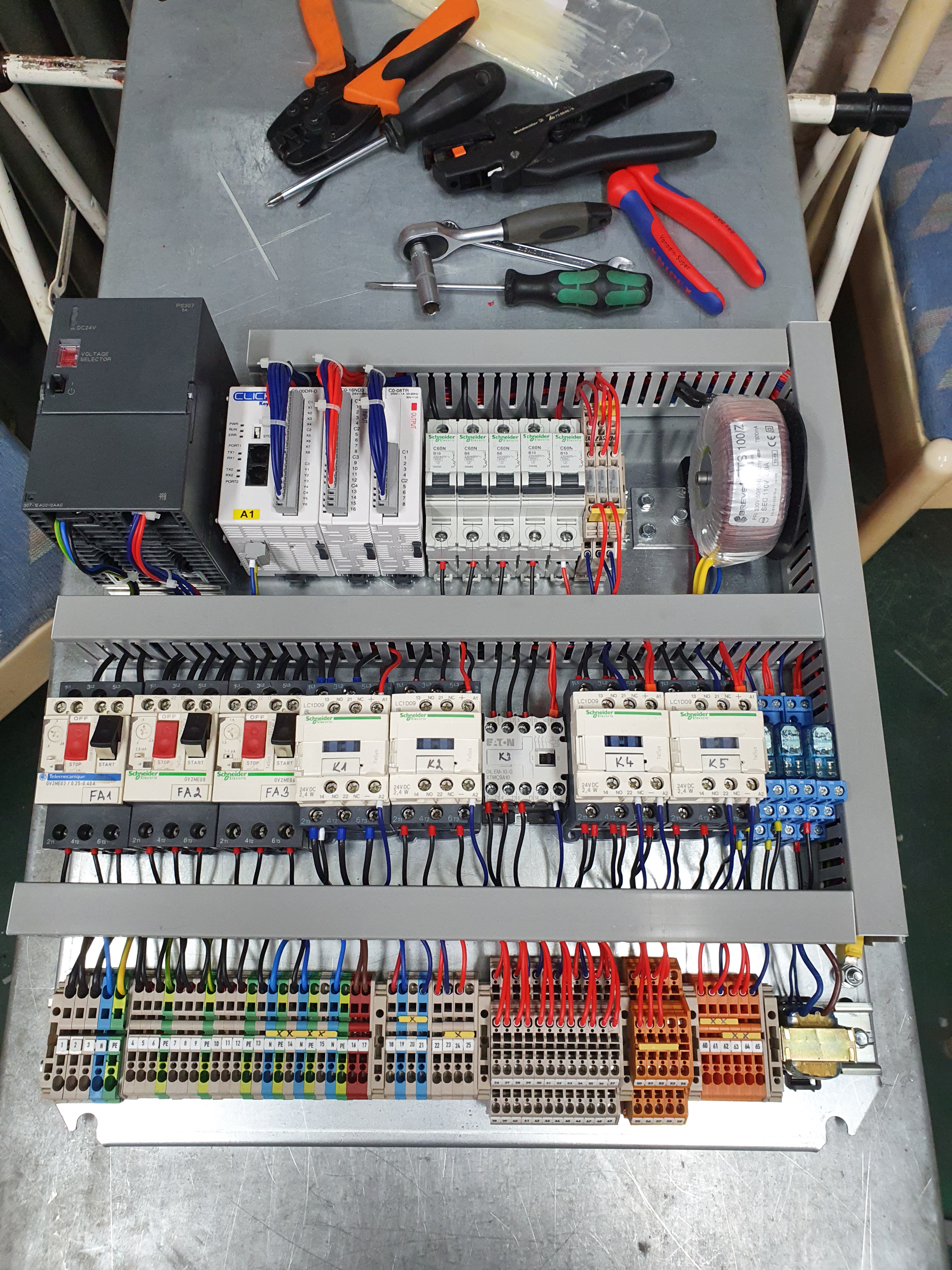 No je to za včera a dneska, rozvaděč a ovládací panel do mé rusandy magnetky. Teď jsem dopsal sw do plc a nasucho odcvakal. Teď to ještě hodit na stroj, natahat nové kabely od všeho a rozjet...