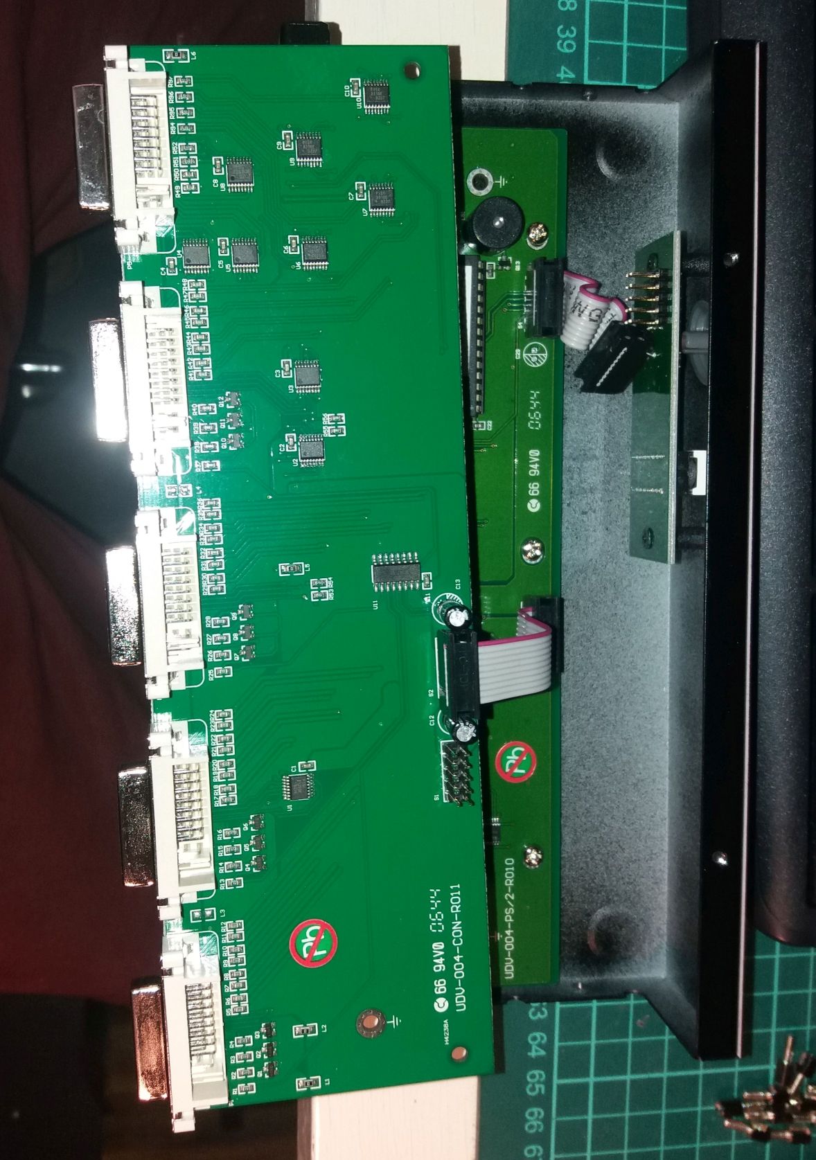Jak vypadá druhá strana toho PCB s DVI porty? Řekl bych, že to jen analogově přepíná signály a asi to je elektrické omezení (omezené přenosové pásmo). Zkusil jsi protlačit více?