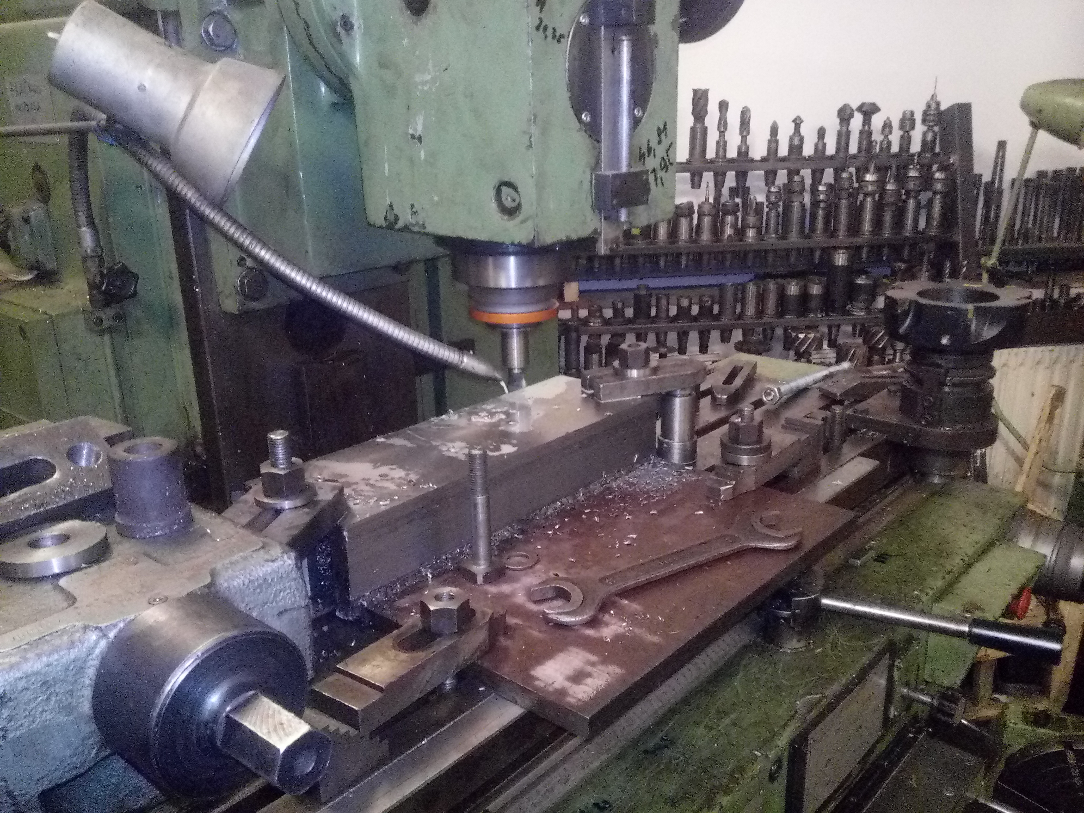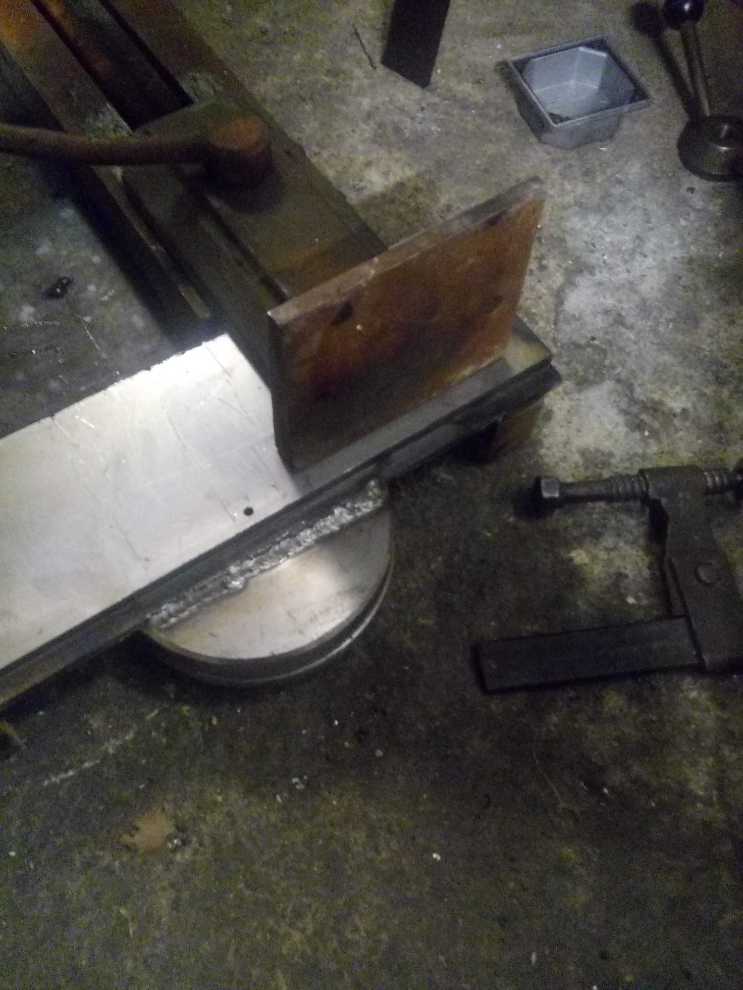 Tak jsem k tomu něco přivařil, doufám, že se to nebude klepat při tom lámání rukou a že aspoň budou zlomený rovně :-) . Teď to půjdu fréznou na čisto. Úhlování mám vymyšlený jako otočný stůl na FNGJ - myslím dotahování.