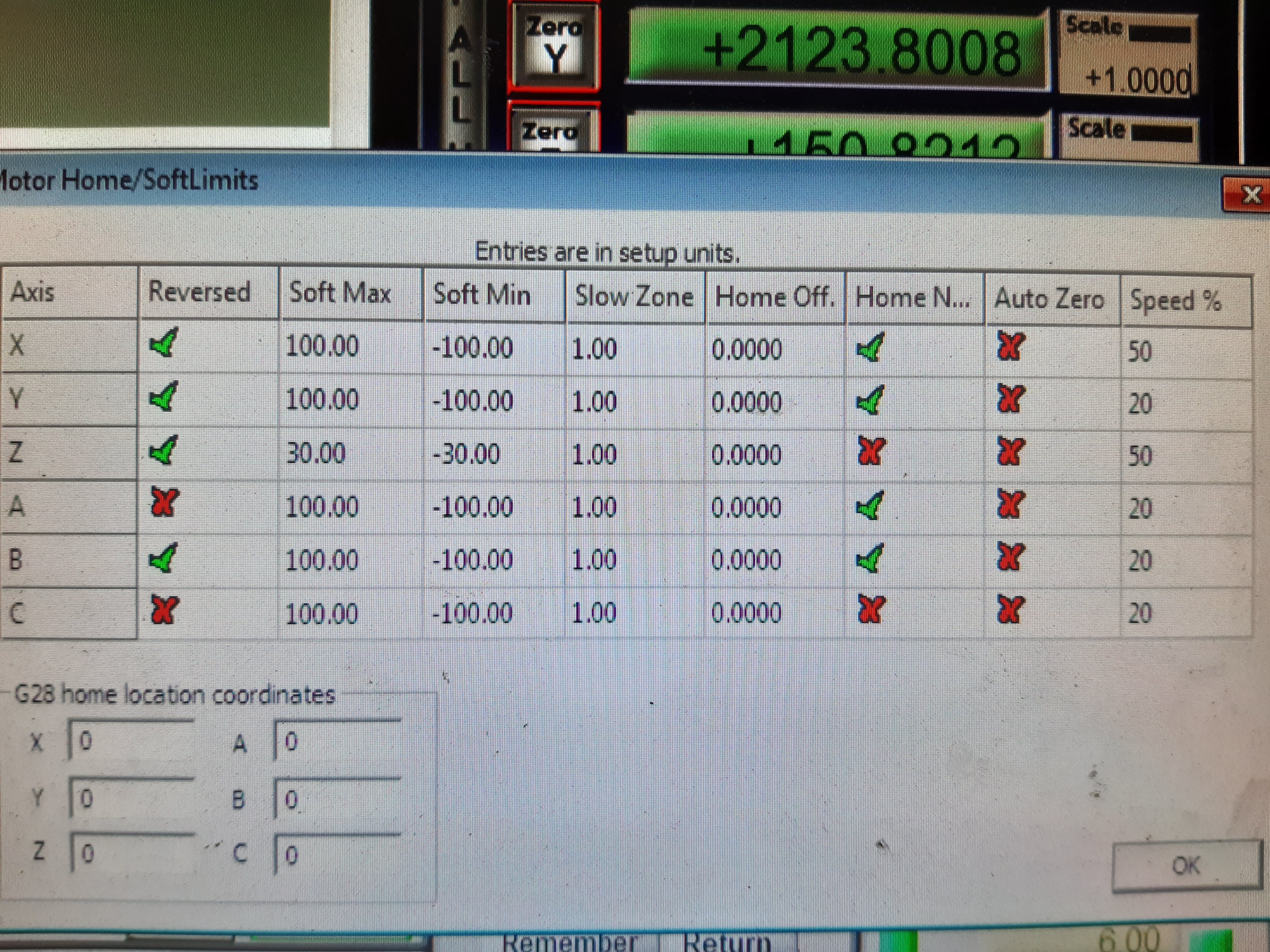 ahoj, tak to opravdu nevím, ale jen tak pro pokus bych zrušil zatržítko u home i limitu ++ a -- u té osy B ...