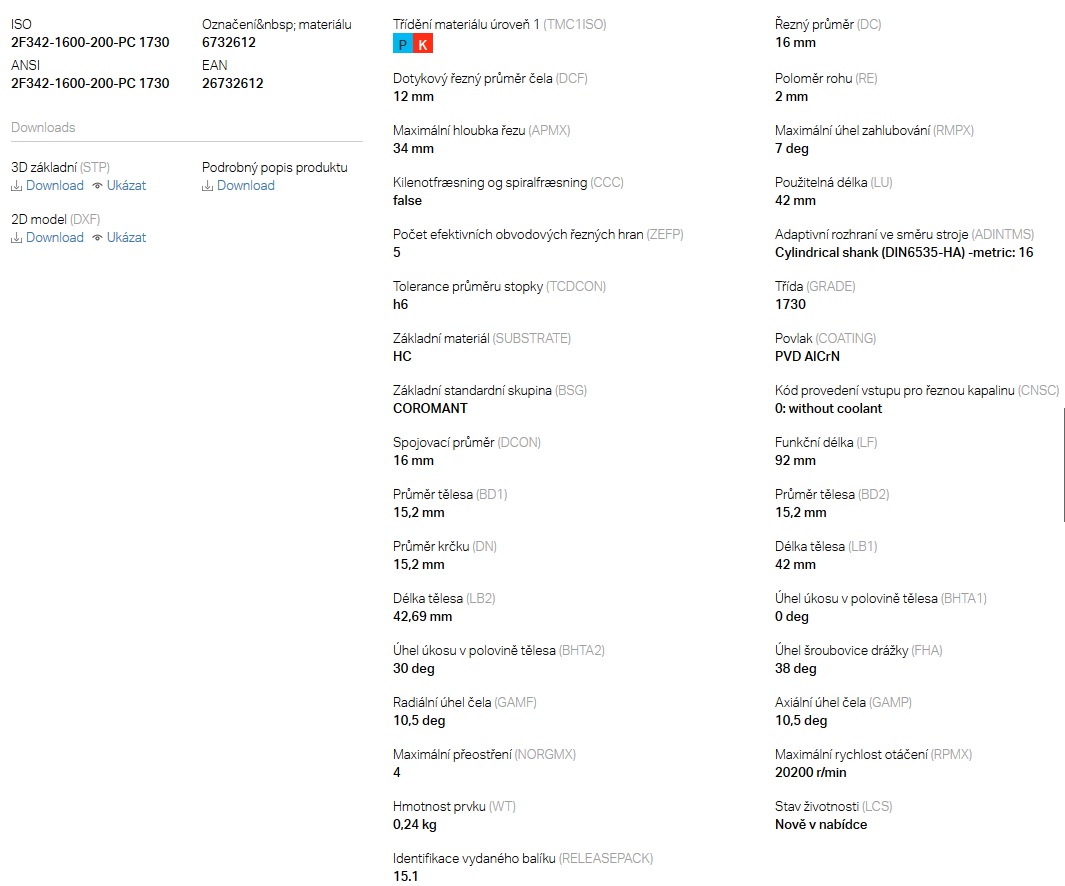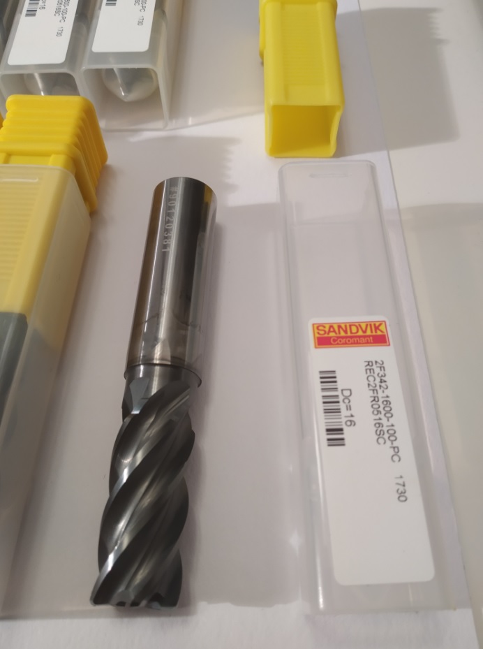 Prodám strojně broušené ( 1-ní brus čela) vysoce výkonné monolitní TK frézy SANDVIK včetně povlaku AlTiN