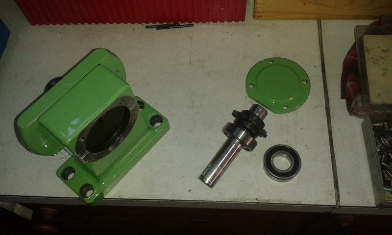 Predlžil som reťaz posunu vretena a dvoma ozubenými kolesami po zmene smeru vyviedol von na osku náhonu. Pridal som dosku na uchytenie lýry pre prípad , keby som chcel presné otáčky v závislosti na otáčkach vretena. Reťaz a reťazové kolesá nebol problém zohnať ,pasovali mi z motocykla Babeta. Predpokladám že tieto úpravy sa dajú urobiť aj na frézkach 675 a 676.